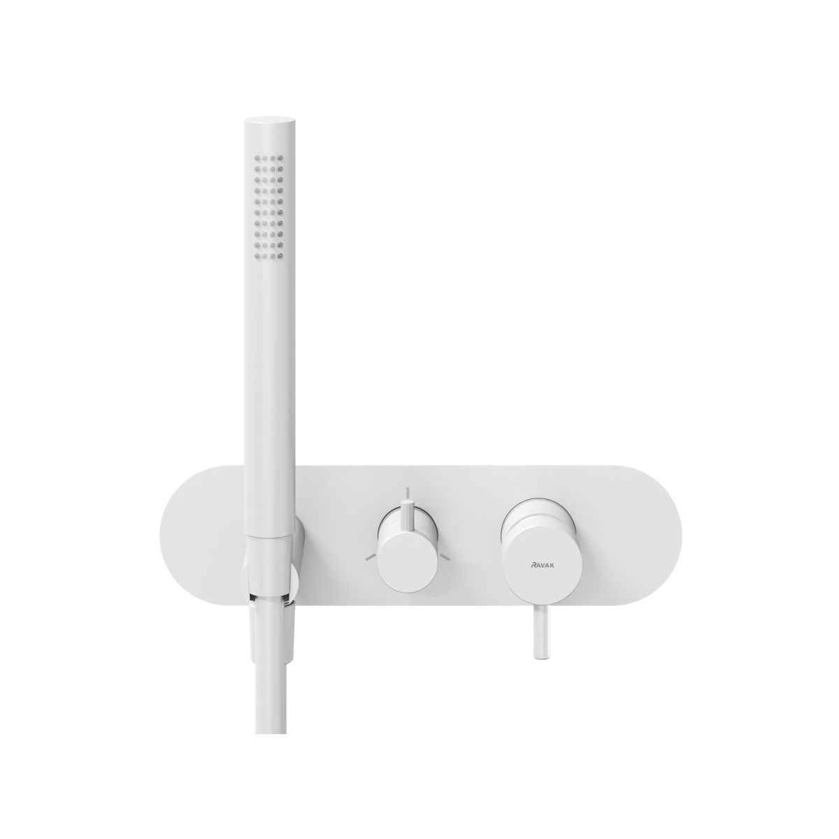 Espirit rejtett csaptelep, háromutas, zuhanykészlettel, R-boxhoz tervezve. Matt fehér kivitel. Az RB 07D.50 rejtett csaptelep alapszekrénye nem tartozék, külön kell megvásárolni!