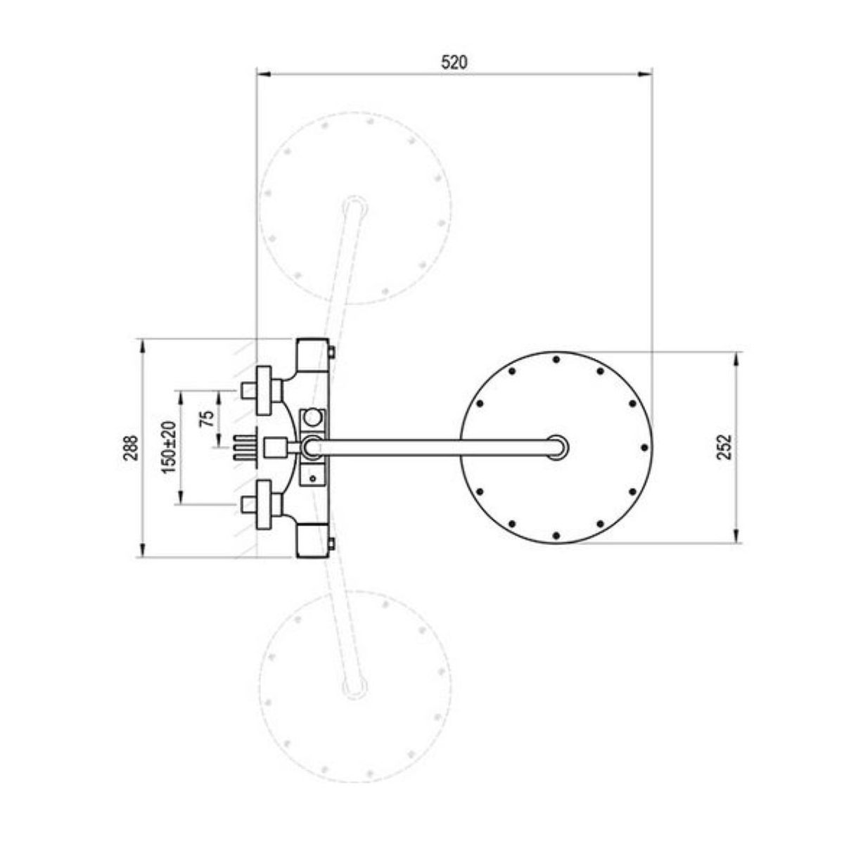 - tartozékok típusa: kerek zuhanyfej 25 cm; egyfunkciós zuhanyfej. A zuhanyfej oldalra is elforgatható