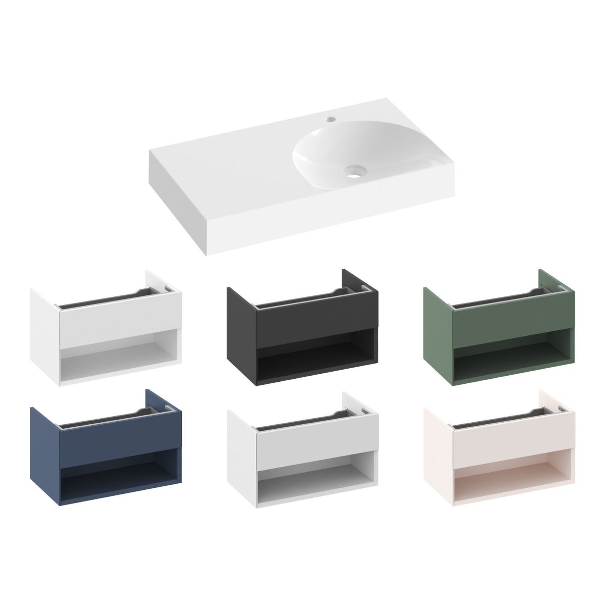 Lite 80/45 L mosdó bal oldali tárolóhellyel. A mosdó nem rendelkezik túlfolyóval, ezért a túlcsordulás megakadályozása érdekében rögzített mosdókeretet kell használni. A mosdó előre fúrt lyukkal rendelkezik álló mosdócsaphoz. A készlet tartalmaz egy szerelőkészletet (összekötő csapok, csavarok stb.). Falra szerelhető vagy kiegészíthető SD Lite 80 vagy SD Lite 80 L mosdószekrénnyel.