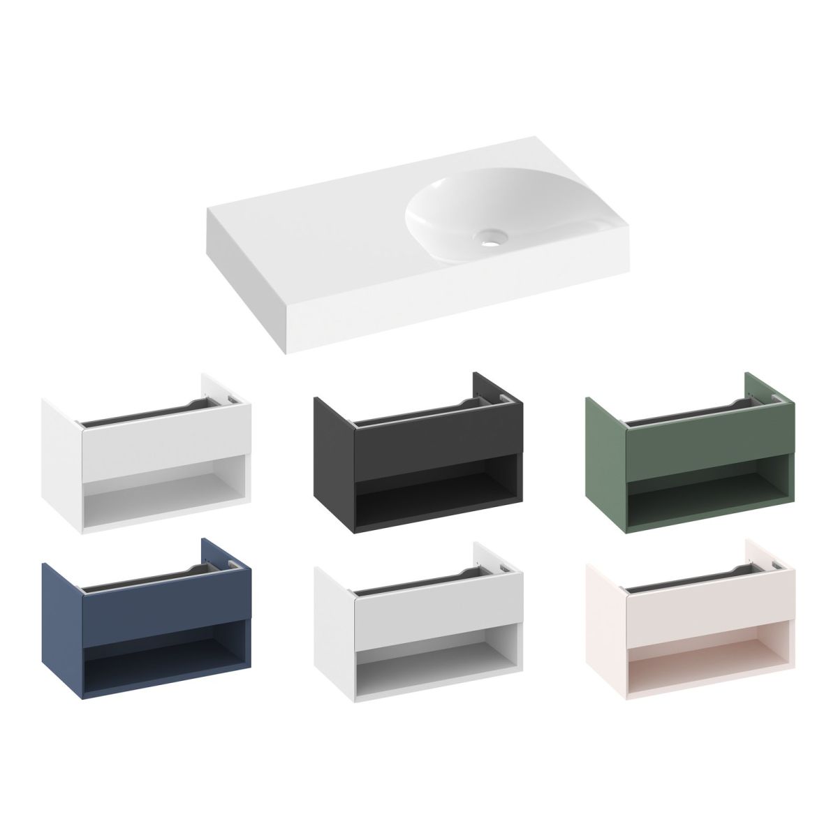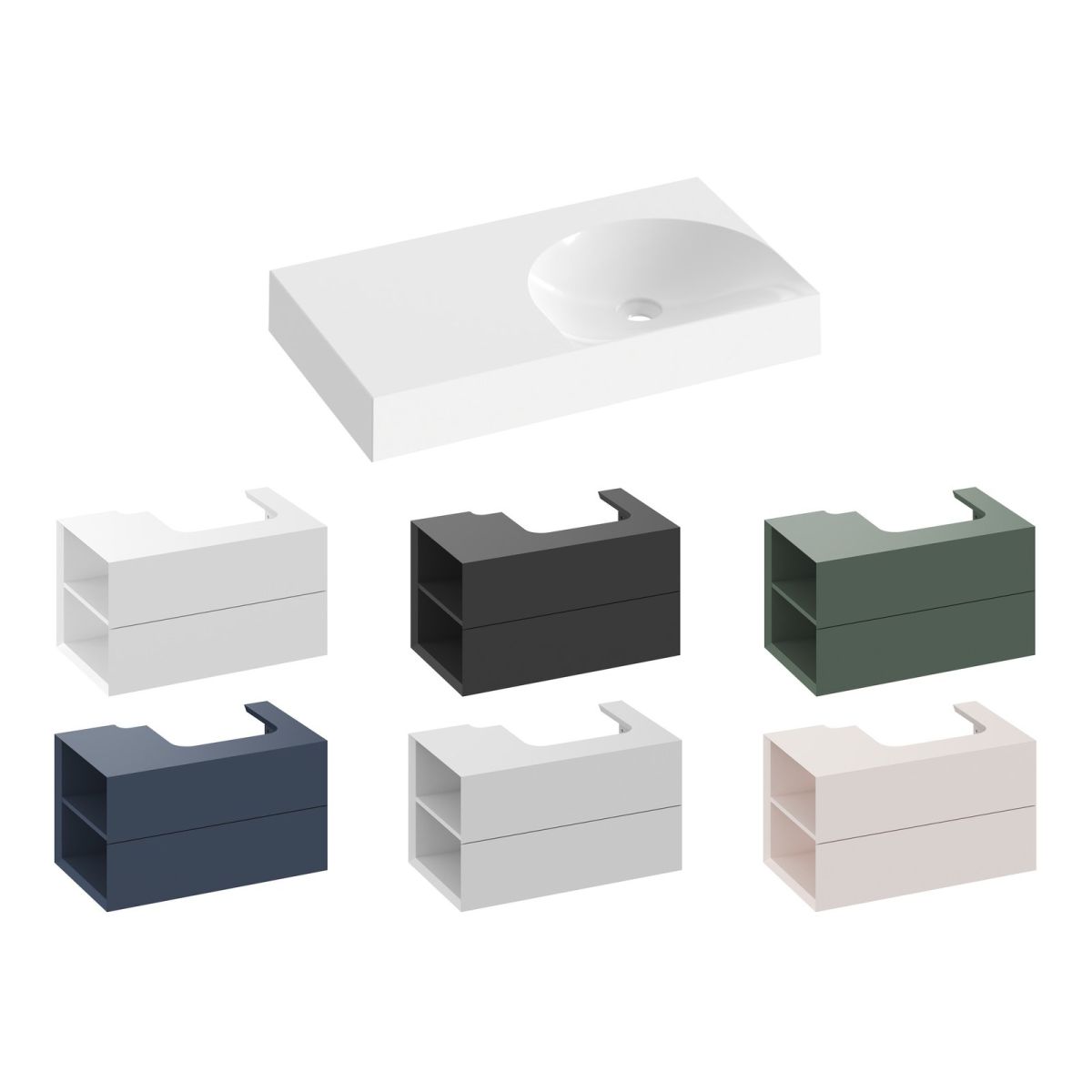 Lite márványból öntött bútoros mosdókagyló falra szerelhető vagy fali szekrénybe süllyeszthető, túlfolyó nélkül. Fehér kivitelben. Lyuk nélkül - mosdókagylóval kombinálható.
