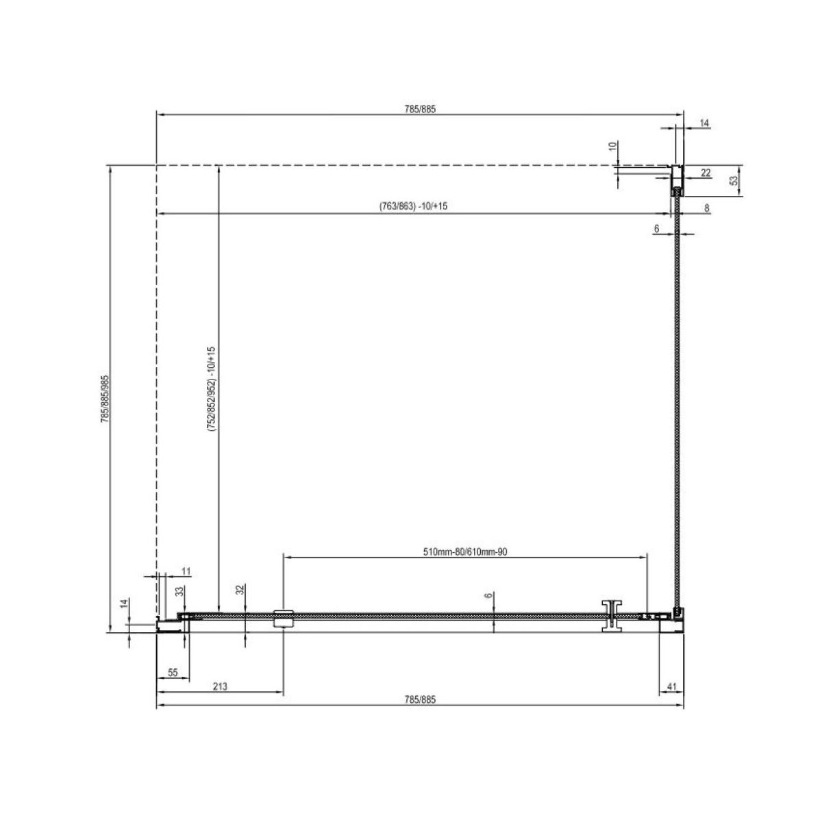 Nexty rögzített fal szatén felülettel, átlátszó üvegbetéttel és Ravak AntiCalc® védőréteggel. A terméknek nincs jobb- vagy baloldali változata.