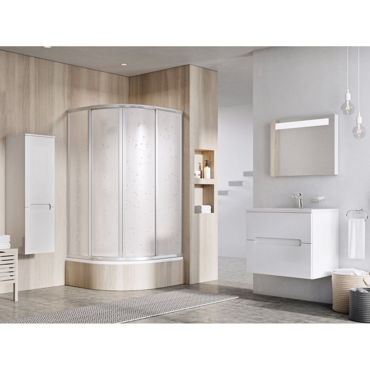 Sabina LA félköríves, mély zuhanytálca. Fehér színű akrilból készült AntiBac® védőbevonattal.
