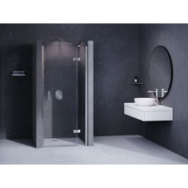 SmartLine kétrészes zuhanyajtó fényes króm kivitelben, átlátszó üvegbetéttel és Ravak AntiCalc® védőbevonattal. Zsanéros nyitórendszer. Jobb oldali kivitel.