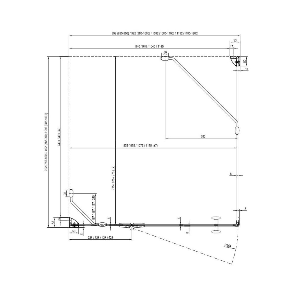 - Változat: zuhanyajtókhoz
