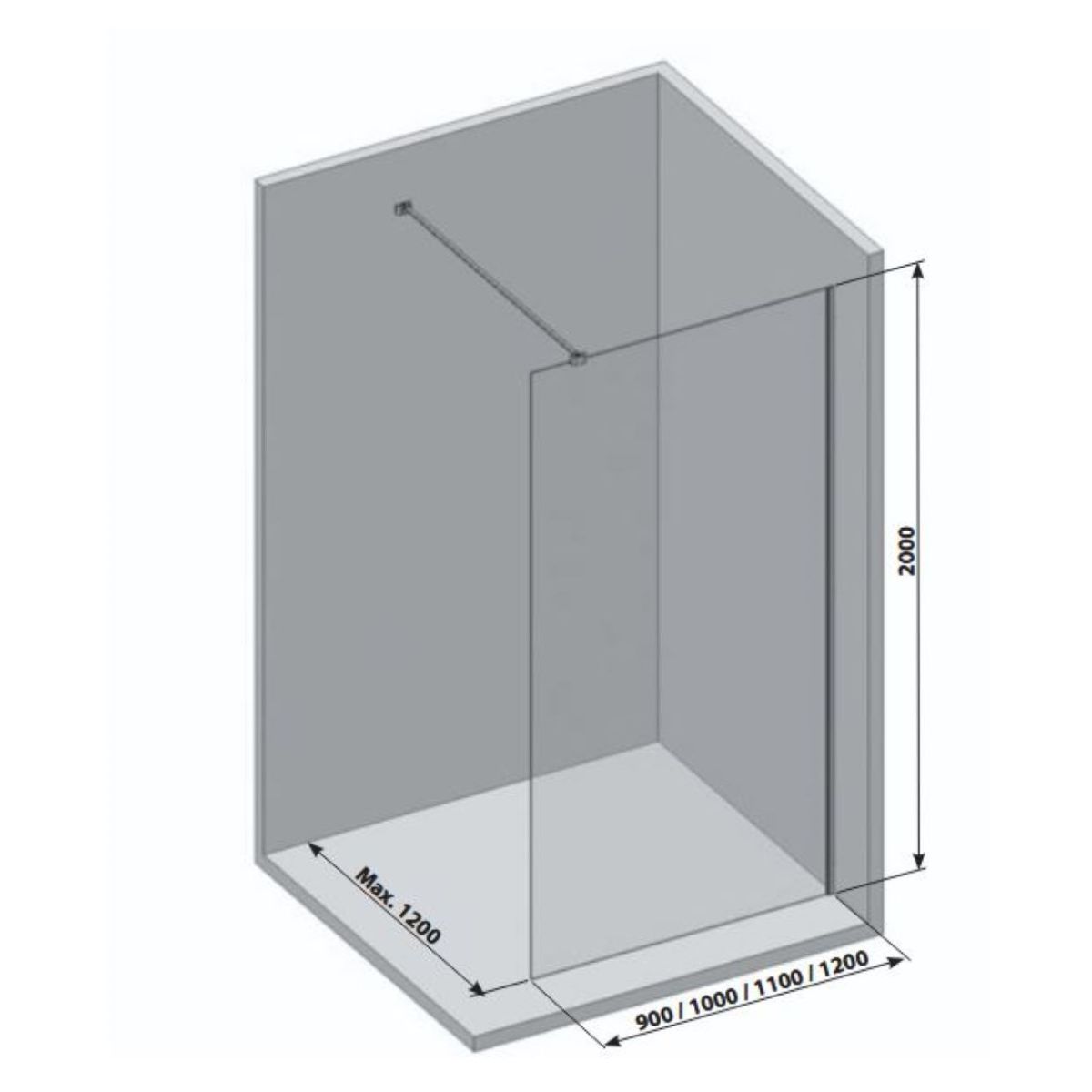 A Walk-In Air Wall zuhanykabin 6 mm vastag edzett üvegből készül. A termék stabilitását egy 120 cm hosszú fém konzol biztosítja, amely a kívánt bejárati szélességre rövidíthető.