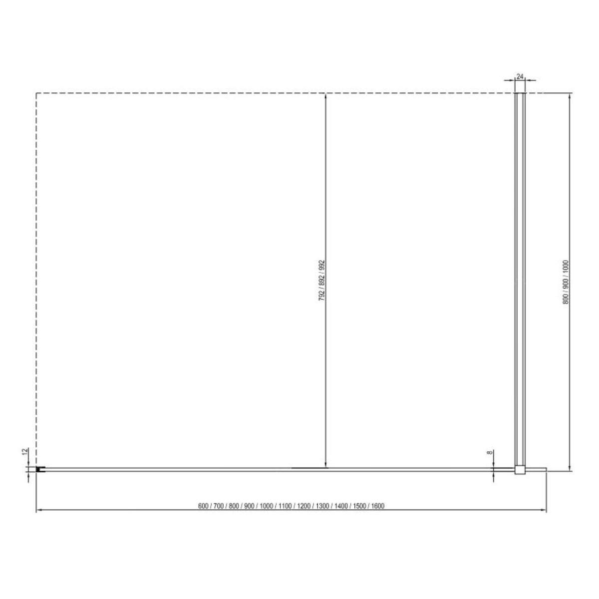 - a fix üveg Walk-in Wall magassága: 200 cm