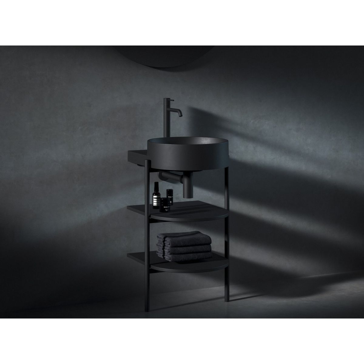 Álló fémszerkezet CS Yard 40 polcokkal a Yard 40 mosdókagyló felszereléséhez. Fekete matt kivitelben.