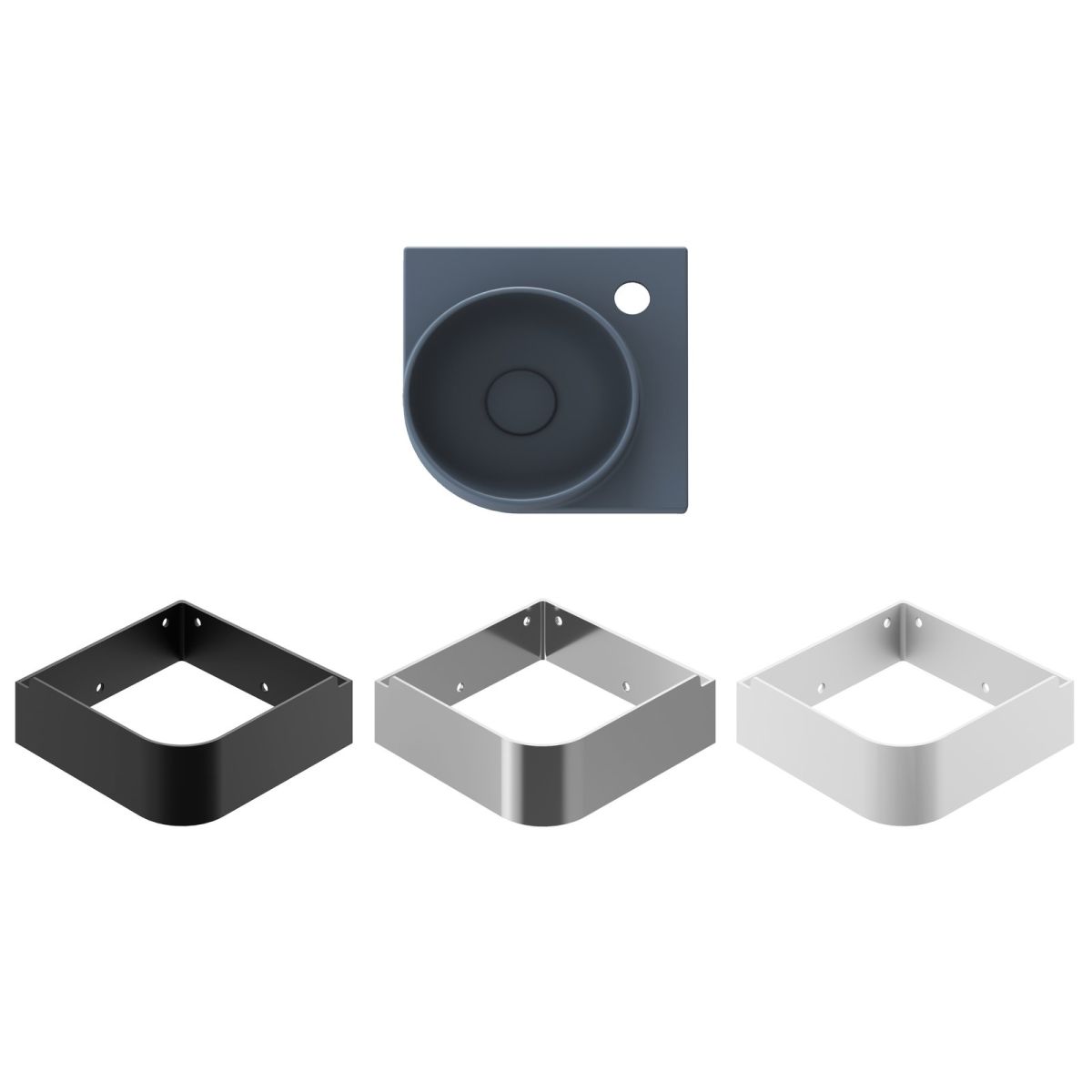 Yard sarok vékonyfalú kerámia mosdókagyló Yard konzolra vagy pultra szerelhető, túlfolyó nélkül. Színe Deepsea Blue. Keverőcsaphoz való furattal.