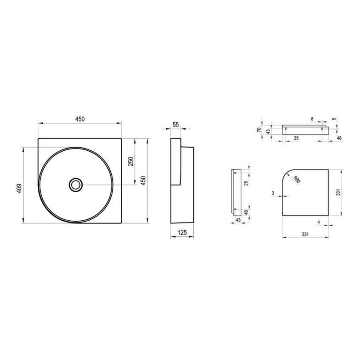 A Yard 45 C mosdókagyló kiváló minőségű kerámiából készült, és a Yard 45 C konzolra való felszerelésre készült, a mosdókagyló önmagában nem akasztható a falra. A medencét fix medencedugóval kell kombinálni a víz túlfolyásának megakadályozása érdekében.