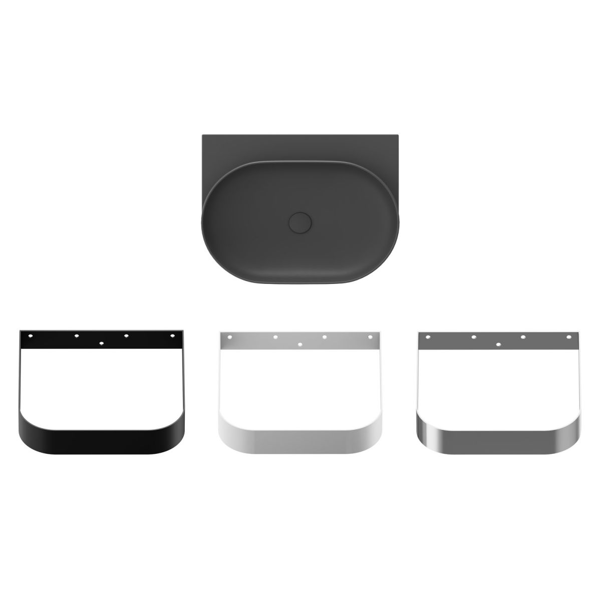 Yard kerámia vékonyfalú mosdókagyló, amely Yard konzolra vagy pultra szerelhető, túlfolyó nélkül. Antracit színben. Lyuk nélkül - rejtett mosdókagylóval kombinálható.