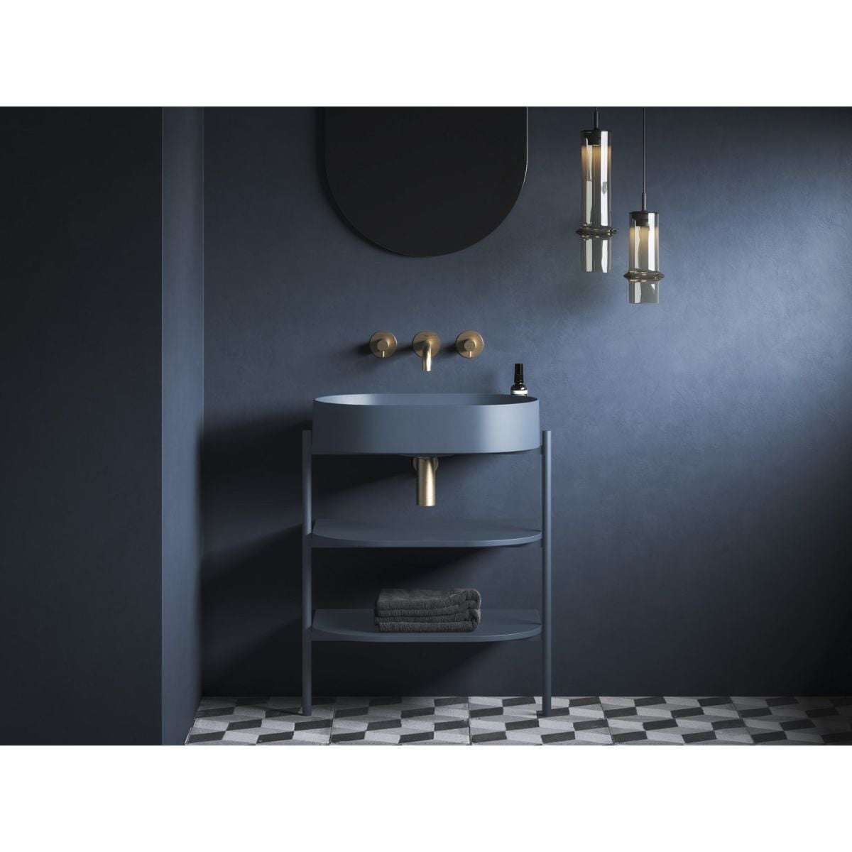Yard kerámia vékonyfalú medence, amelyet Yard konzolra vagy pultra szerelhető, túlfolyó nélkül. Színe Deepsea Blue. Nyílás nélkül - rejtett medencekeverővel kombinálható.