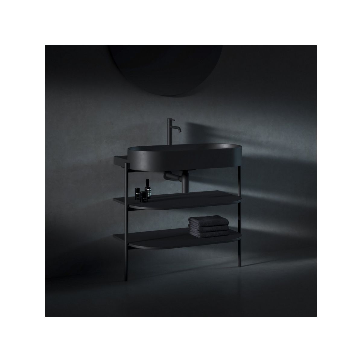 Yard vékony falú kerámia mosdókagyló, amelyet Yard konzolra vagy pultra szerelhető, túlfolyó nélküli. Színe fekete matt. Csapfurattal.