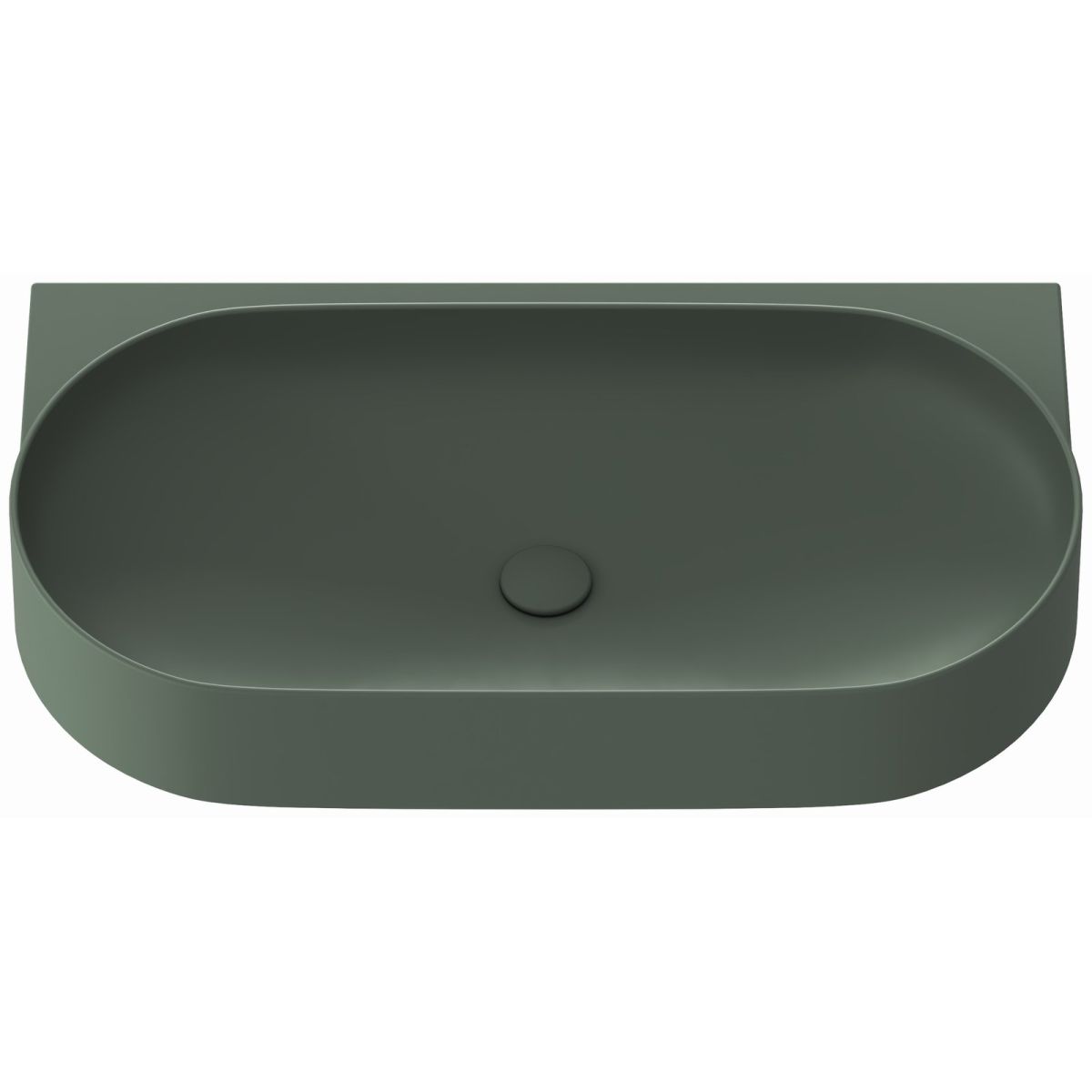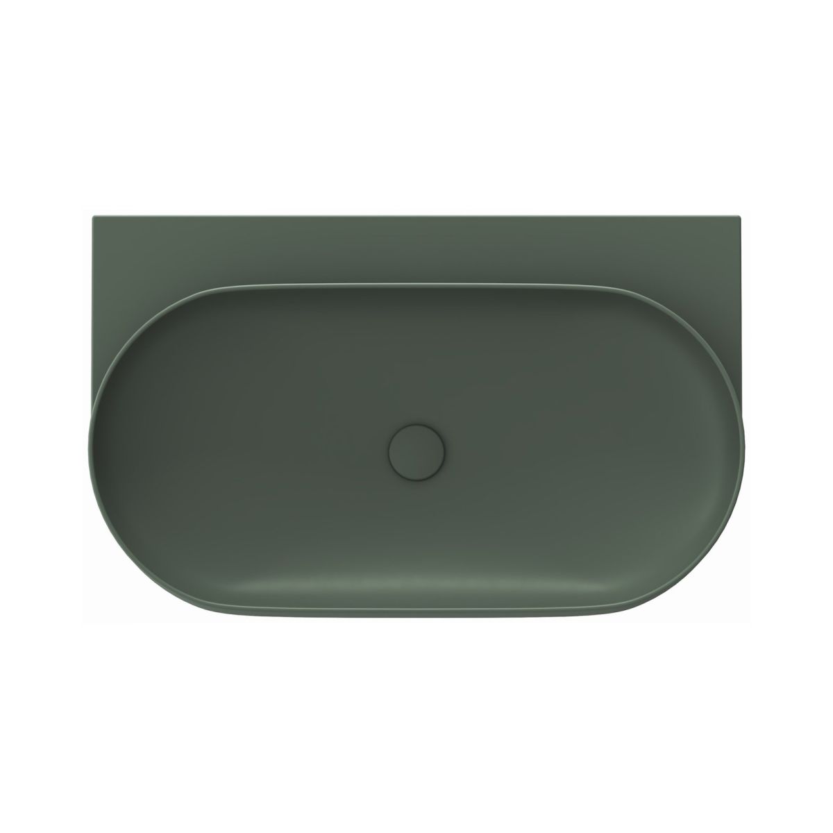 Yard kerámia vékonyfalú medence, amelyet Yard konzolra vagy pultra szerelhető, túlfolyó nélkül. Szín Szürkészöld. Nyílás nélkül - rejtett mosdókagylóval kombinálható.