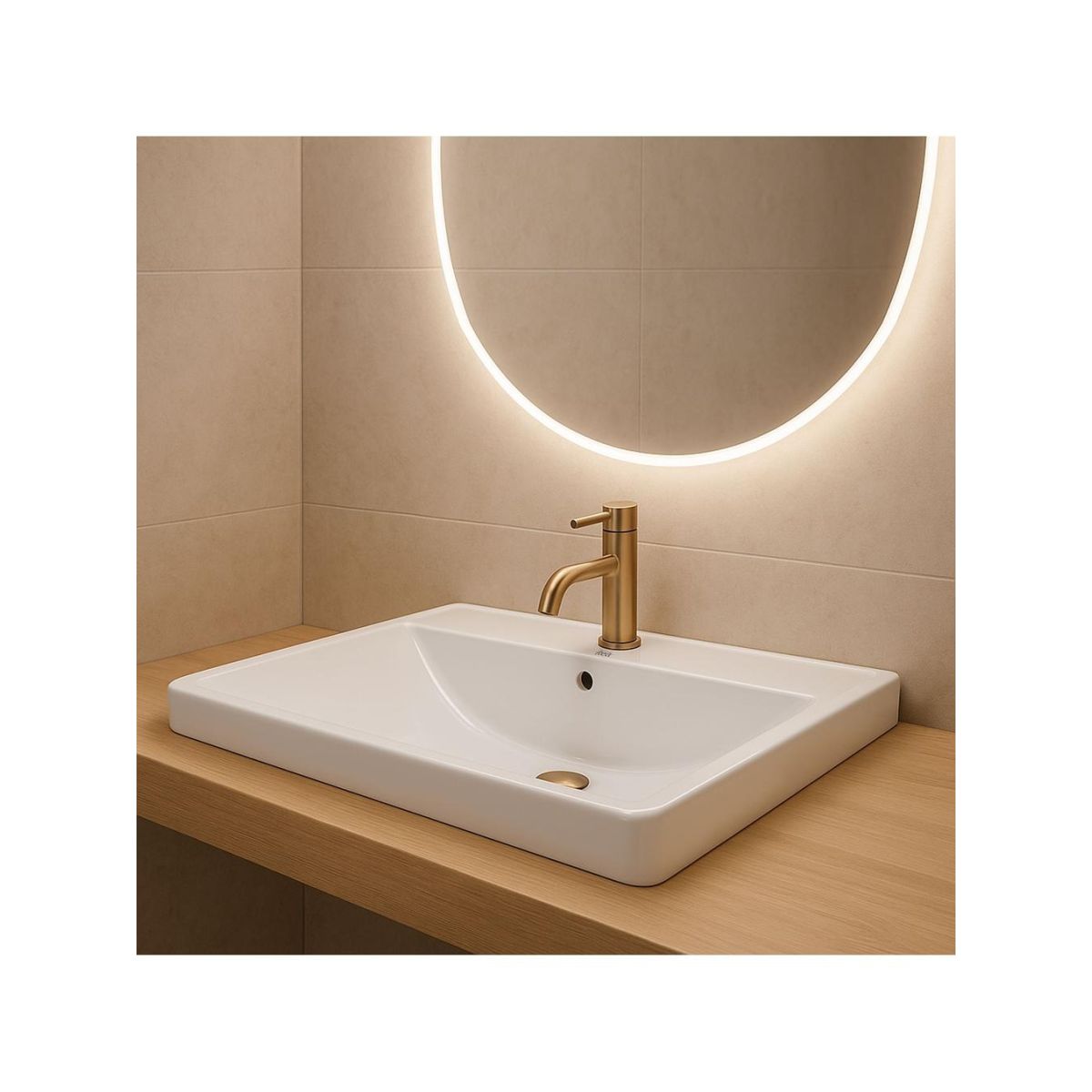 A kényelmet és a funkcionalitást szem előtt tartva tervezett, süllyesztett mosdó. A speciális gyártási eljárásnak köszönhetően a mosdó könnyen tisztítható és kényelmesen használható a mindennapi életben. Modern és egyedi kialakítása, valamint a felhasznált anyagok kiváló minősége hosszú élettartamot és megbízhatóságot biztosít. A mosdóban van egy lyuk a mosdócsap felszereléséhez és egy túlfolyó lyuk.
