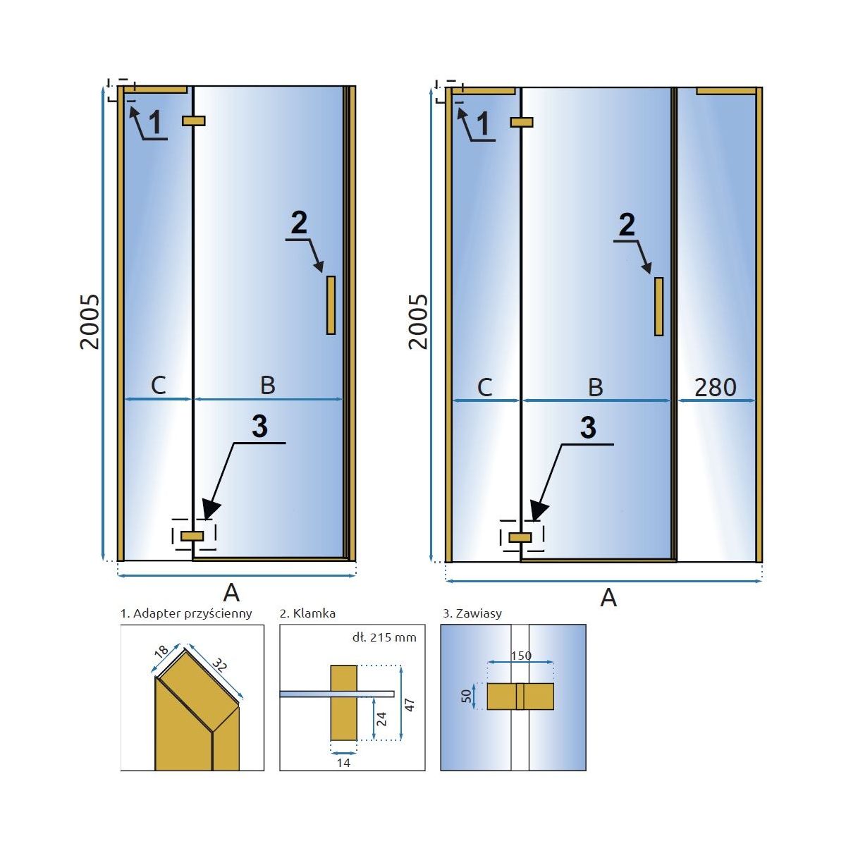 - rögzített falpanel szélessége C: 21,5 cm