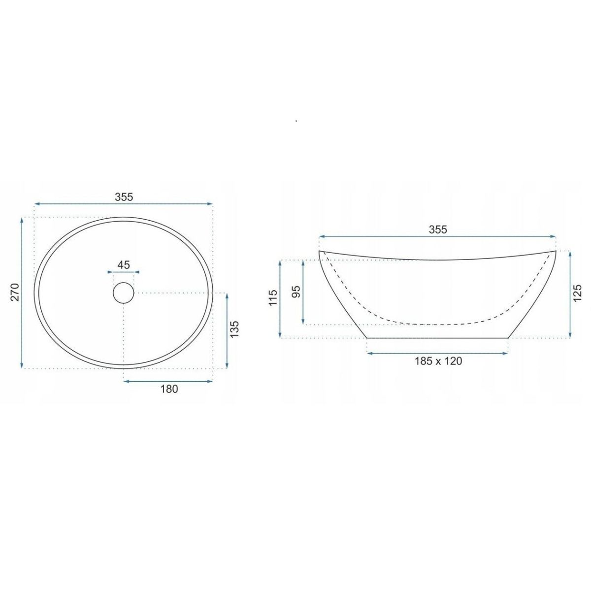 Rea Sofia mosdótál 35x26 cm ovális mosdótálak szürke/kő REA-U9237