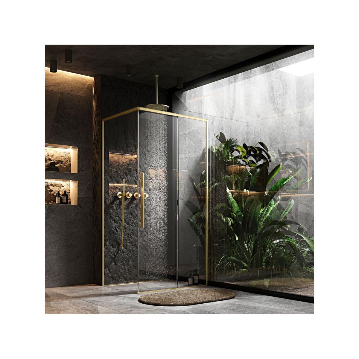 Rea Solar Brush Gold zuhanykabin 100x80 cm négyszögletes arany csiszolt/átlátszó üveg REA-K9509