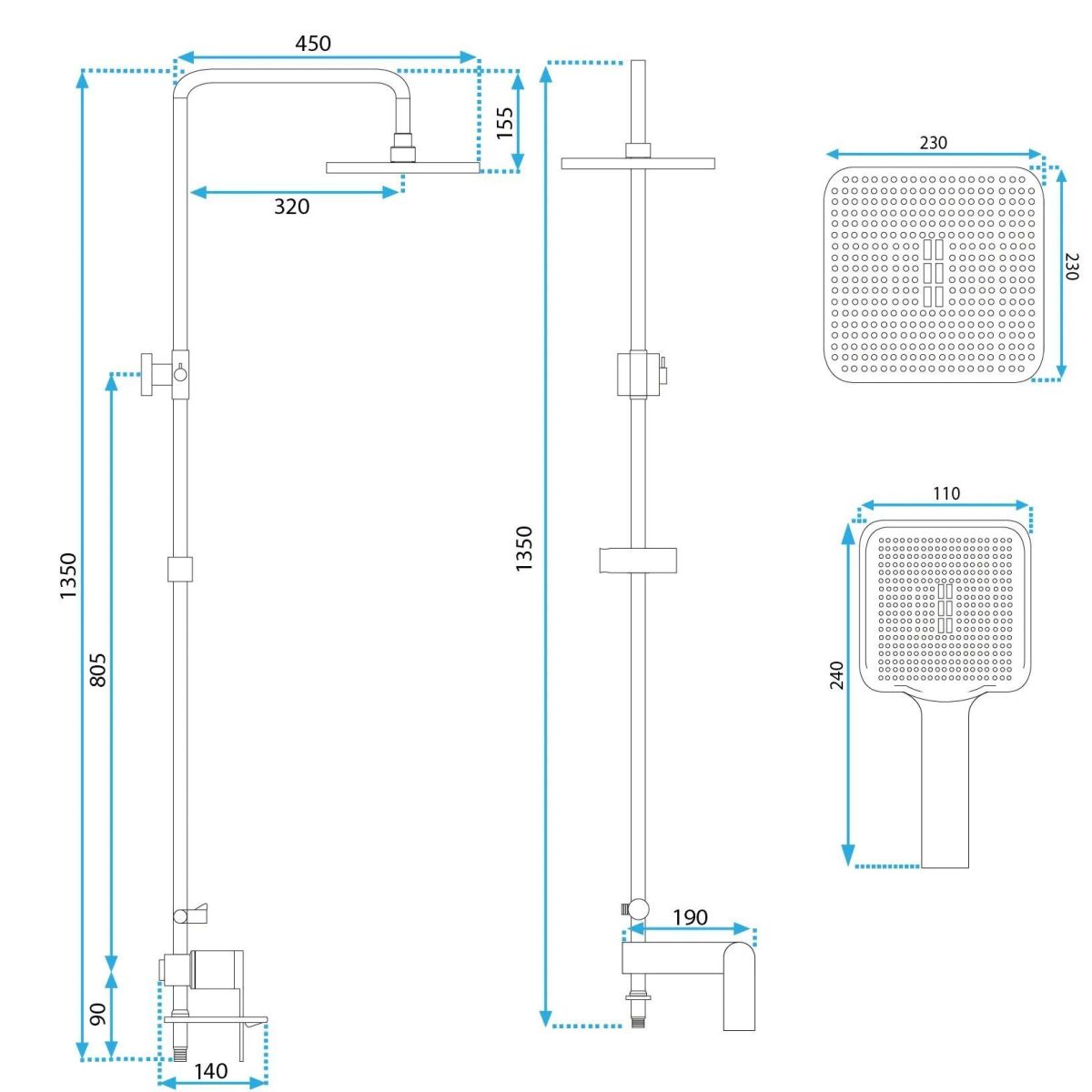 Bemutatjuk Önnek a Storm sorozat felületre szerelhető zuhanykészletét, esőzuhany fejjel és összecsukható kifolyóval. Ez a készlet a kényelem és a funkcionalitás jegyében készült. A zuhanyelemek divatos formáját a legmagasabb minőségű, négyrétegű bevonat borítja. Ennek a technikának köszönhetően a csaptelep védett a korrózió és az elszíneződés ellen. A szett tartalmaz egy ultra esőzuhany fejet, egy csapot elemekkel, egy kézi zuhanyt és egy kifolyót. A szett ideális azok számára, akik szokatlan megoldásokat keresnek, és eredeti, egyedi fürdőszobát szeretnének kialakítani álmaiknak megfelelően.