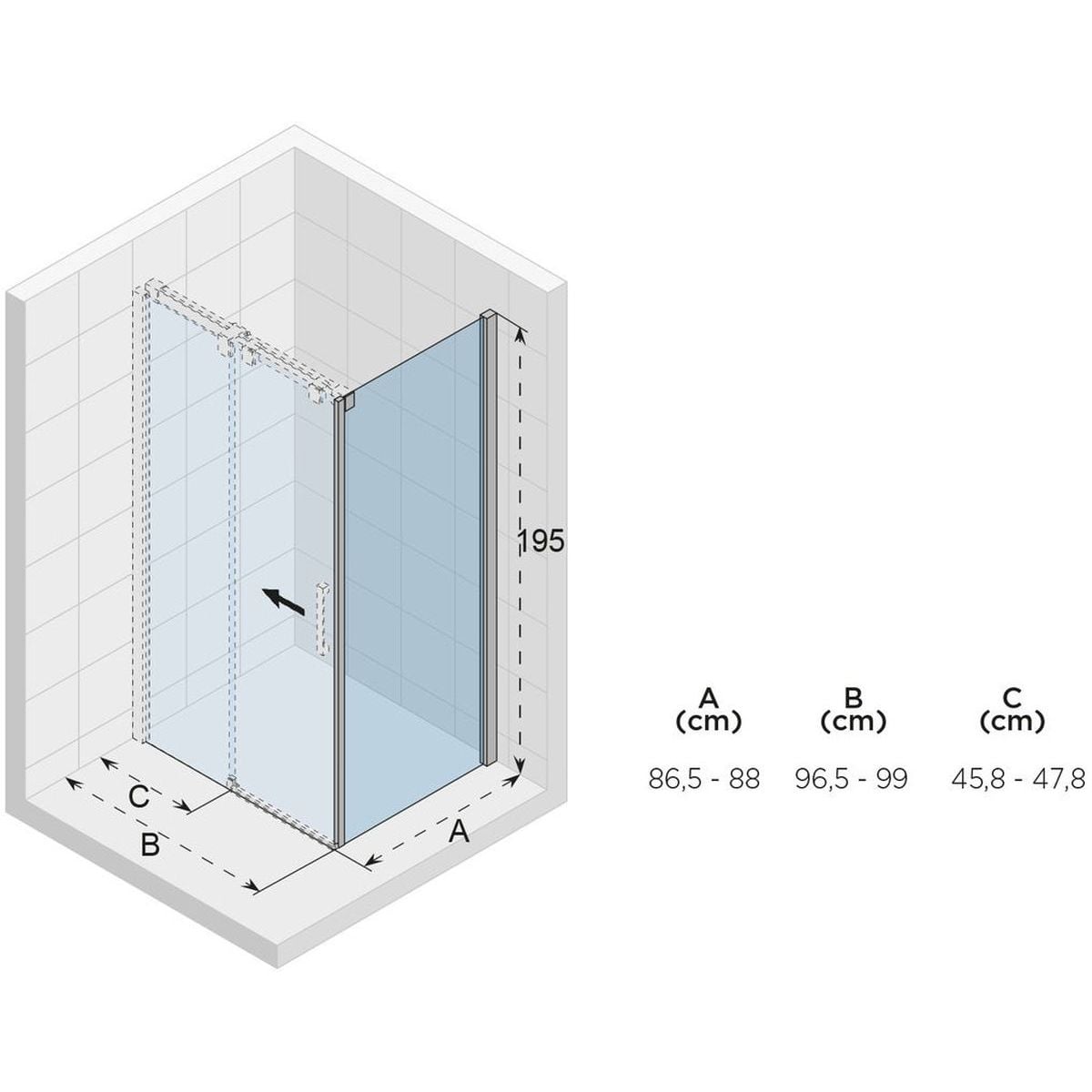 - az ajtó tényleges mérete (B): 96,5 - 99 cm
