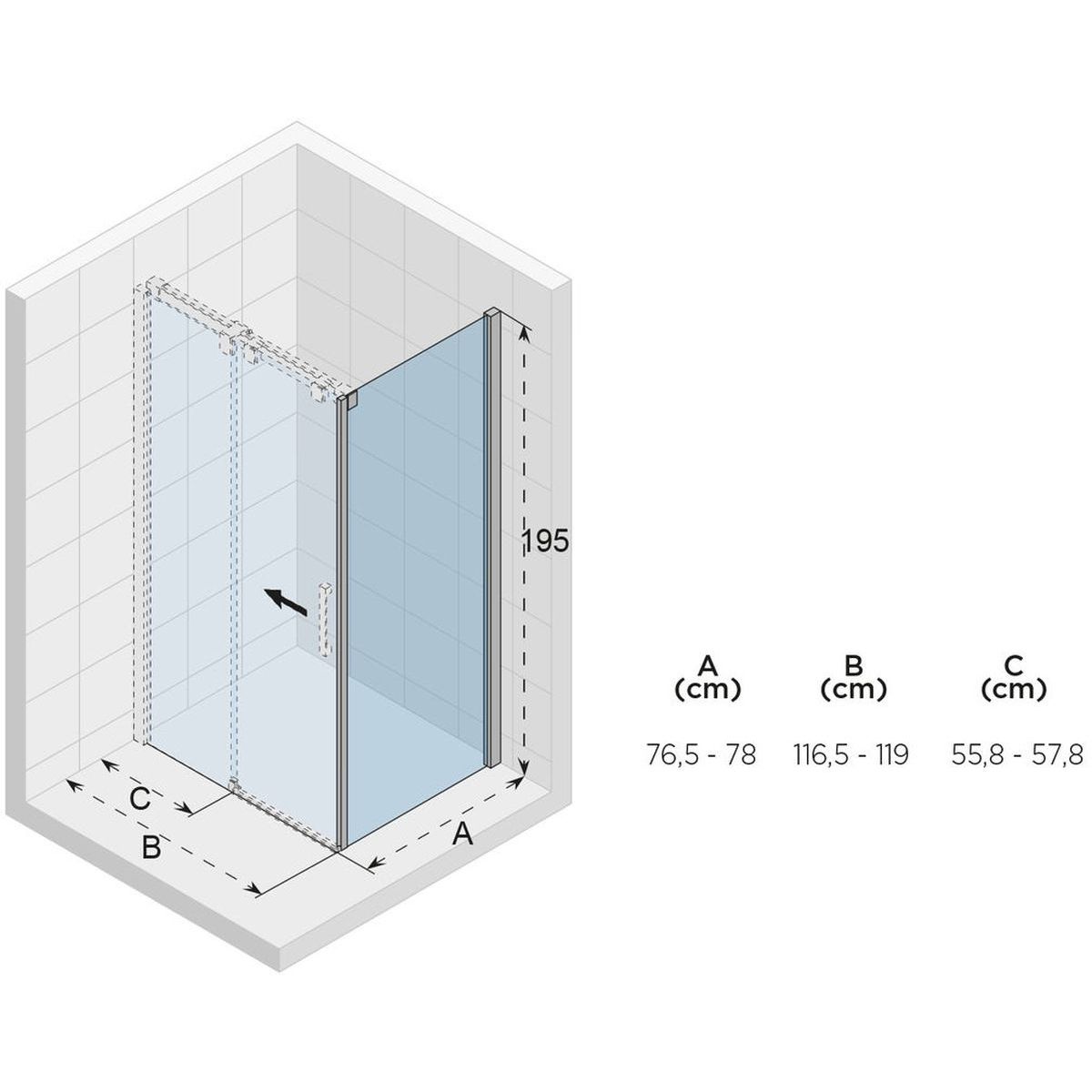 - az ajtó tényleges mérete (B): 116,5 - 119 cm