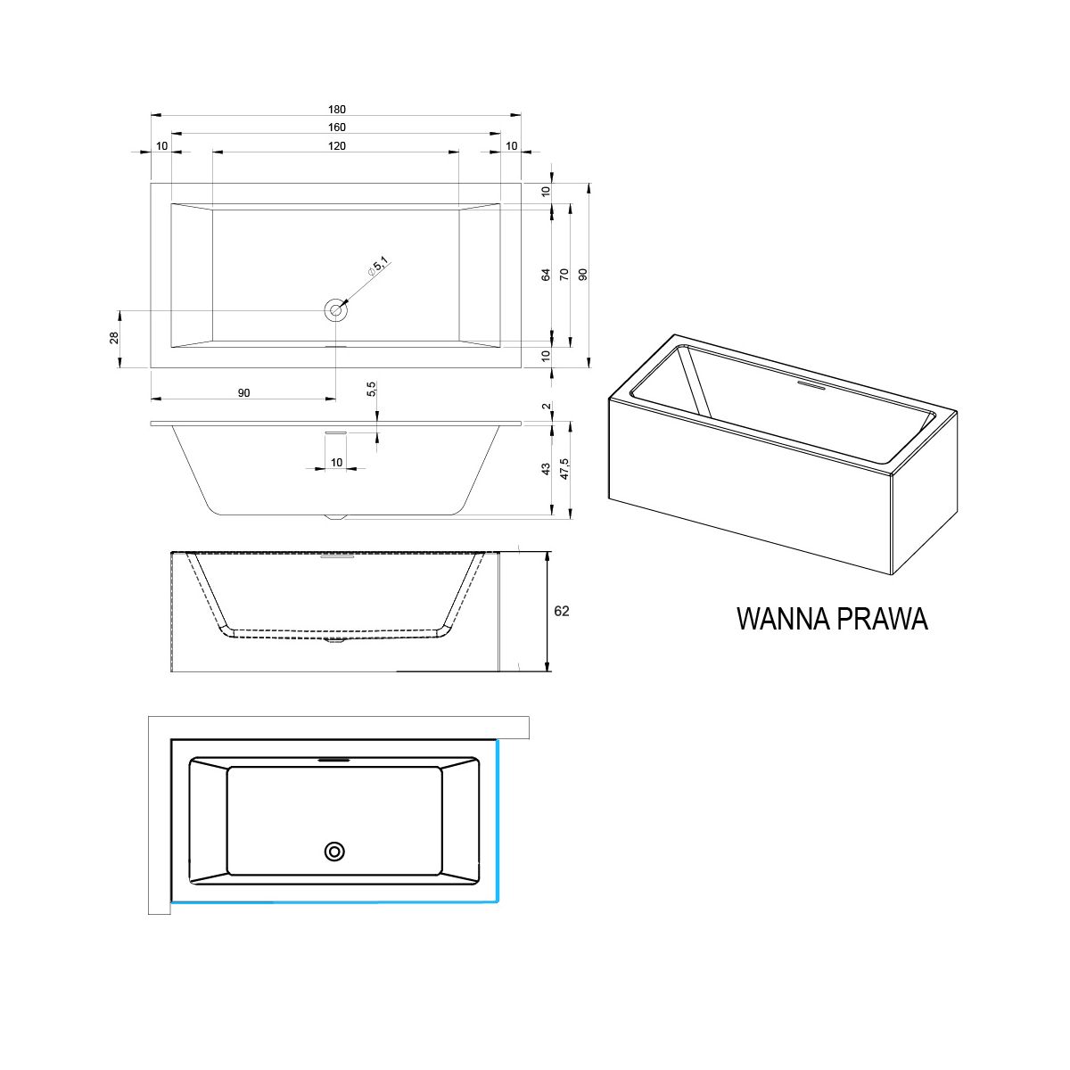 - a készlet tartalmaz egy kattintós szifont, lábakat és egy-egy burkolatot (a kád egyik rövidebb és hosszabb oldalához)