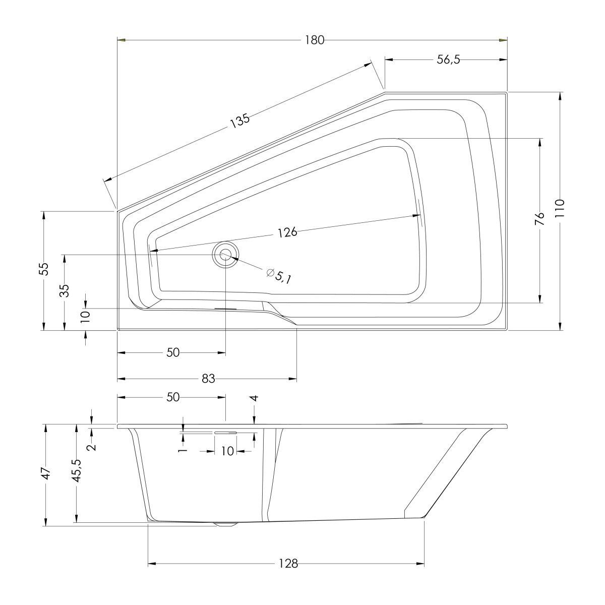 - alacsony fürdőkádperem (2 cm)