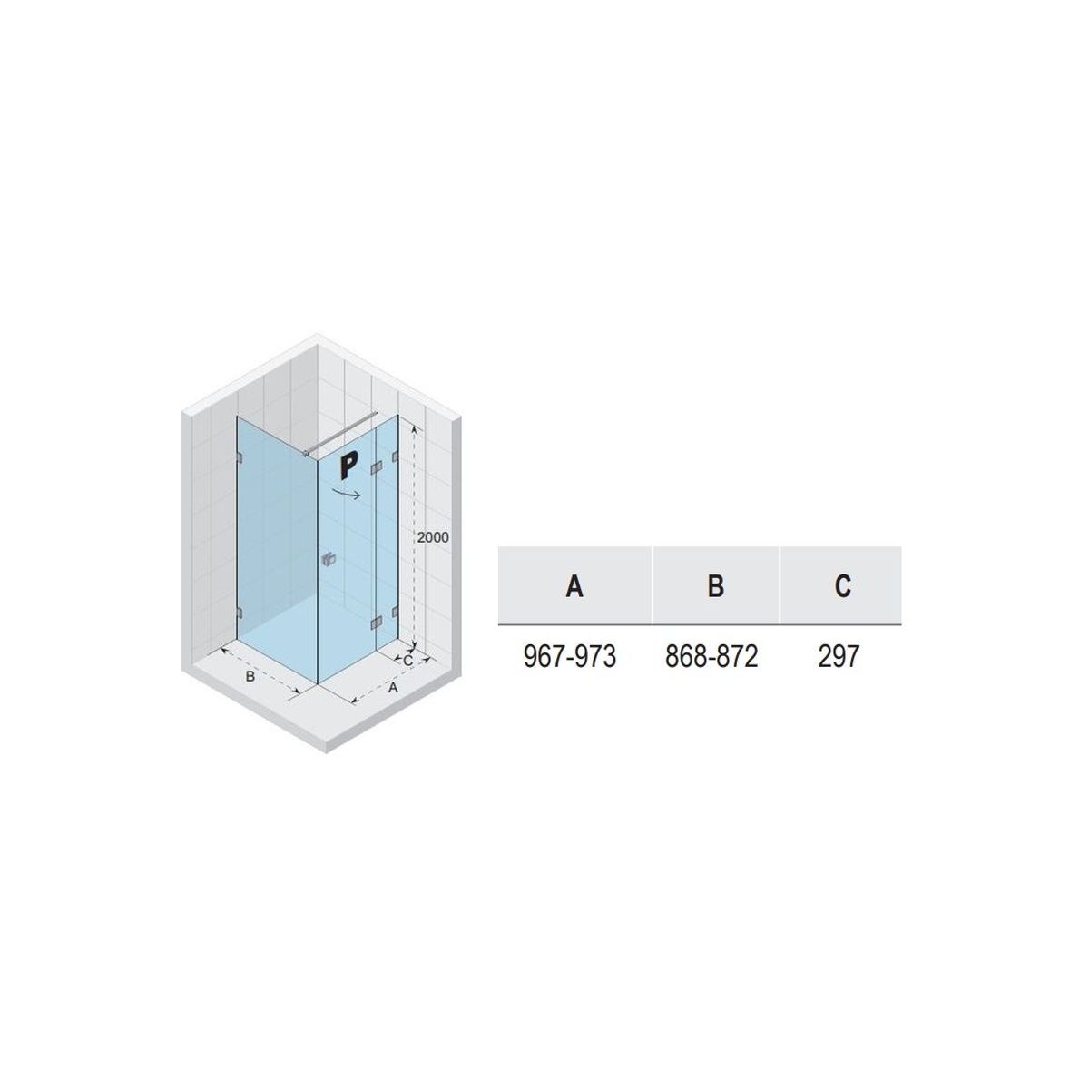 - a rögzített ajtópanel szélessége (C): 29,7 cm