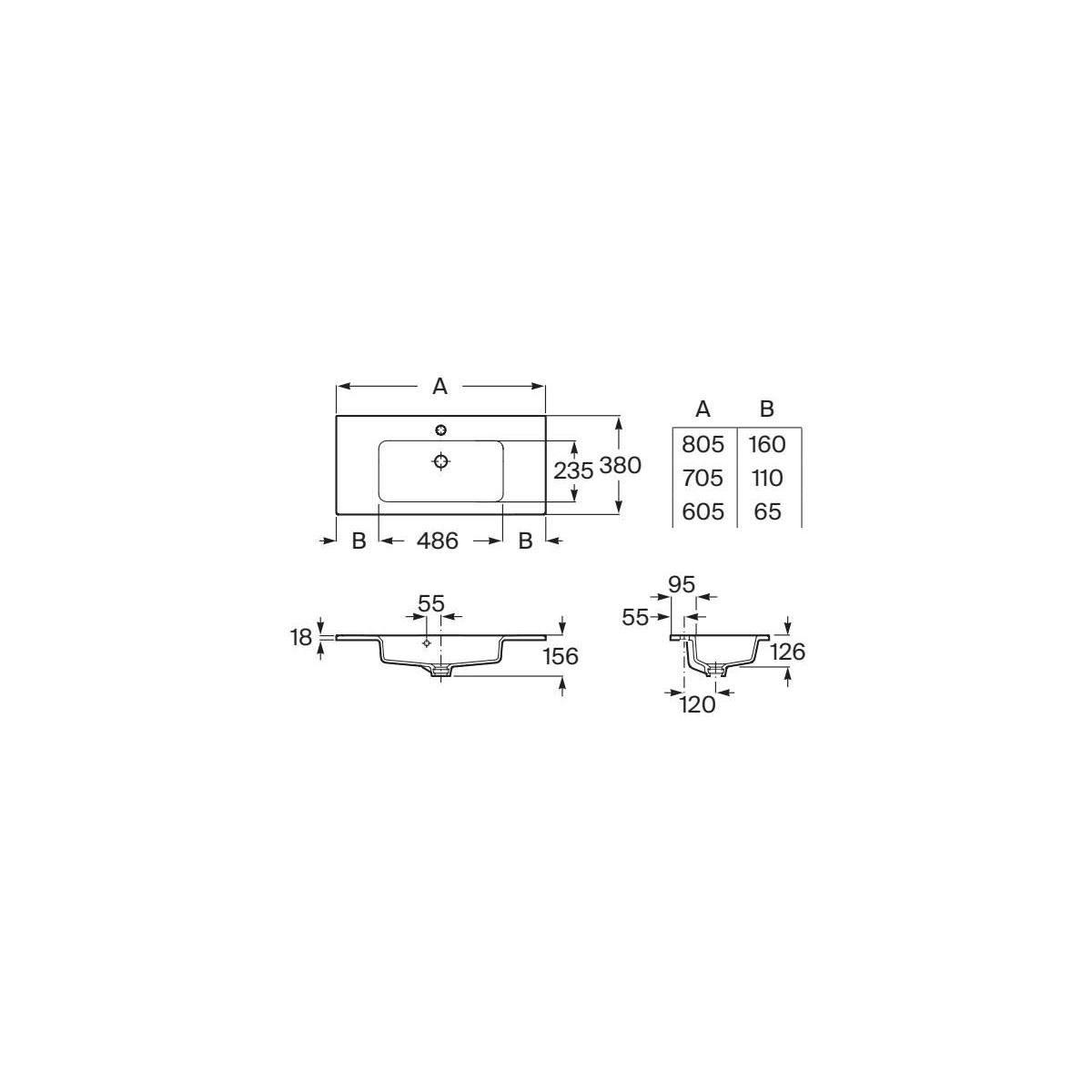 Roca Gap Pro mosdótál 80.5x38 cm négyszögletes beépíthető fehér A3279AA000