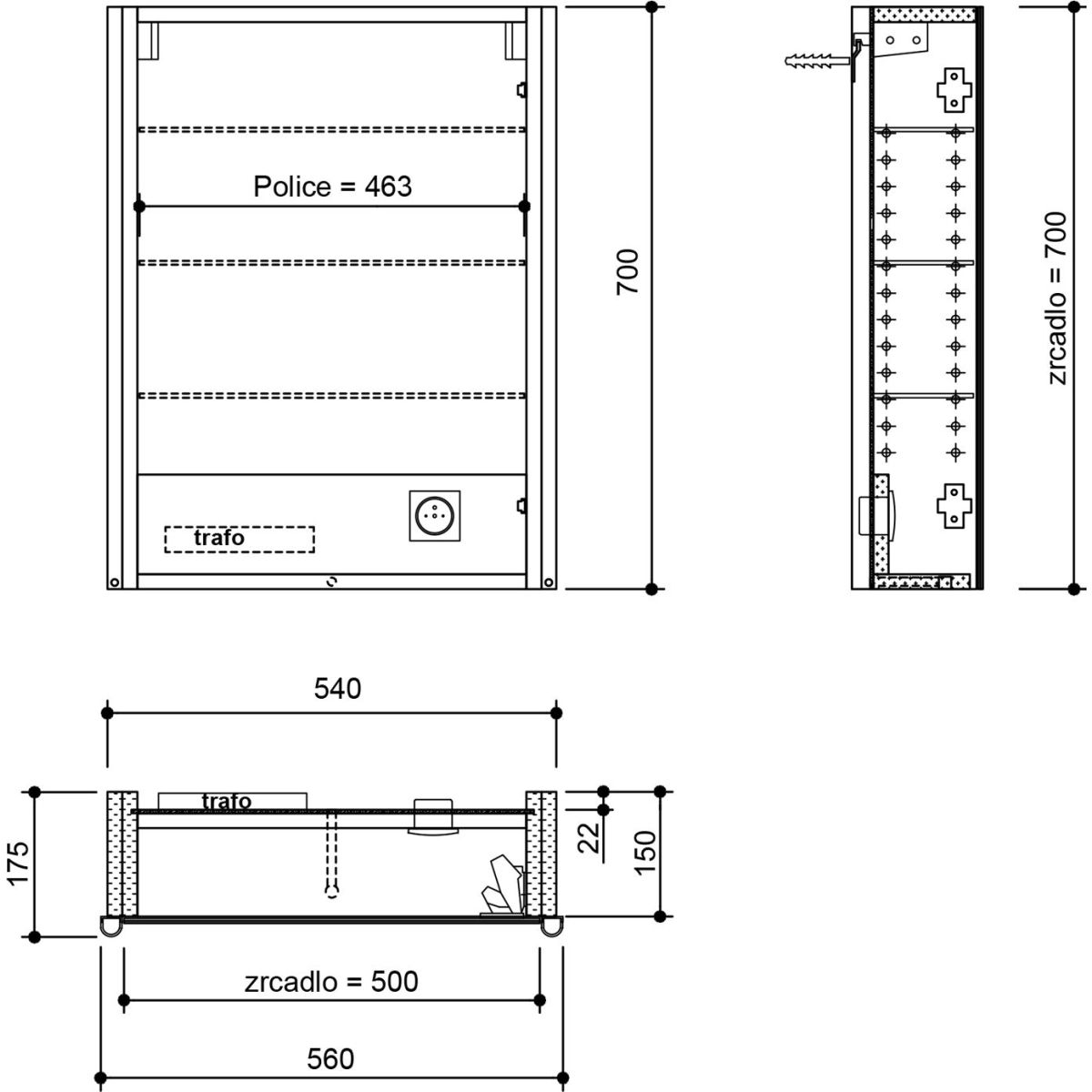 - a LED-világítást a szekrény alsó részén található külső kapcsoló vagy a külön megvásárolható SZ700 érintésmentes érzékelő vezérli