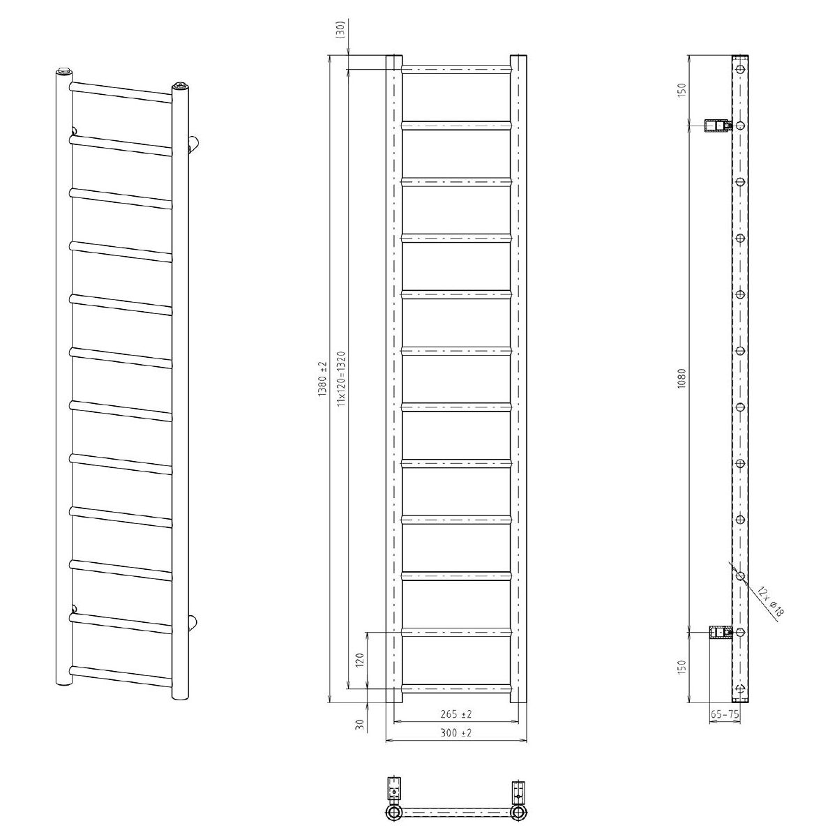 Sapho Dina fürdőszoba radiátor íves 138x30 cm fekete IR373B