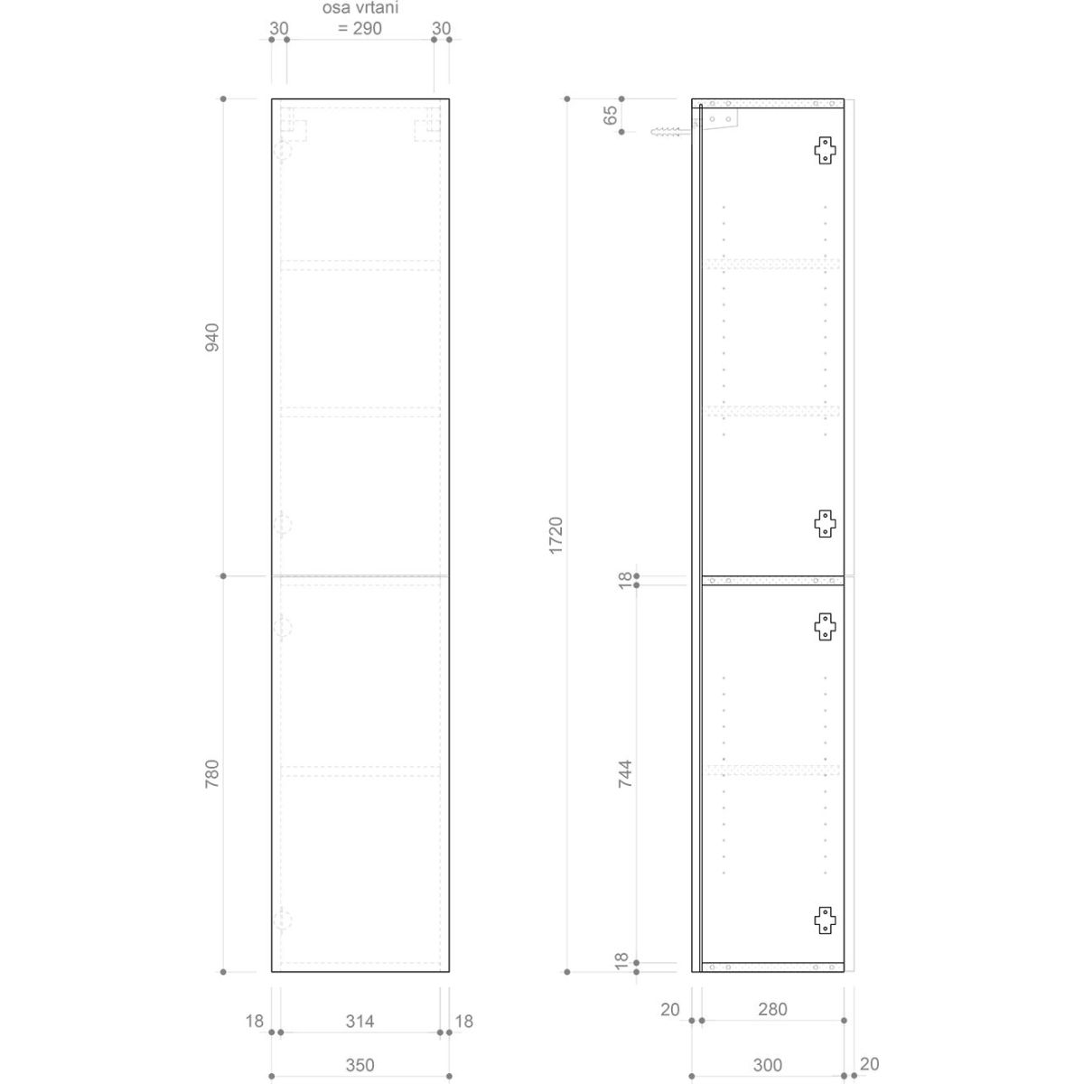 Sapho Espace szekrény 35x32x172 cm oldalra akasztható fehér ESC230-3030