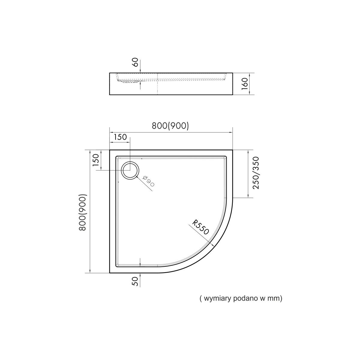 Schedline Favory Plus Black Stone félkör alakú zuhanytálca szifonnal 80x80 cm fekete 3ST.F1O-8080/C/ST