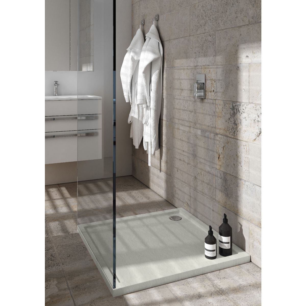 A Caspar New Cement Stone sorozat az általunk kínált Standard zuhanytálca-sorozatok közül a legalacsonyabb magassággal rendelkezik. Az ebbe a sorozatba tartozó zuhanytálcák küszöb nélkül is beépíthetők. Ez a beépítés növeli az idősek vagy mozgáskorlátozottak kényelmét anélkül, hogy elveszítenék egyedi jellegüket. A Caspar New Cement Stone sorozat klasszikus, egy csipetnyi modernitással. Ezek a zuhanytálcák cement árnyalatúak (RAL 7038), és kőszerkezetüknek köszönhetően csúszás- és esés elleni védelmet nyújtanak ("A" osztály a DIN 51097 szerint).