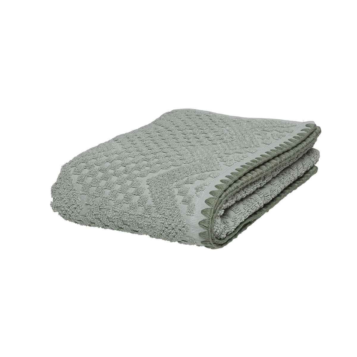 Szeretné érezni a szállodai fürdőszoba luxusát? A kényelmes Luna törölközővel ezt megteheti! A vastag, kiváló minőségű, strapabíró és puha 550 gr/m² pamutnak köszönhetően a törölköző nemcsak rendkívül puha tapintású, hanem rendkívül nedvszívó is. A praktikus huroknak köszönhetően könnyen felakasztható, így még nagyobb kényelmet biztosít. A divatos, zöld színű, szőtt cikk-cakkos minta friss zöld színben természetes jelleget és friss megjelenést kölcsönöz fürdőszobájának. A törülköző hímzett kivitelezése a hagyományos portugál kézművességet tükrözi, ez a gyönyörű részlet mutatja a gondosságot és a szorgalmat, amellyel a törülközőt Portugáliában, a részletekre és a minőségre való odafigyeléssel gyártják. Ráadásul a pamut olyan termelésből származik, amelynek célja a gazdák védelme és a végtermék javítása. Röviden, a Luna törölköző kötelező darab azoknak, akik értékelik a luxust és a kényelmet!
