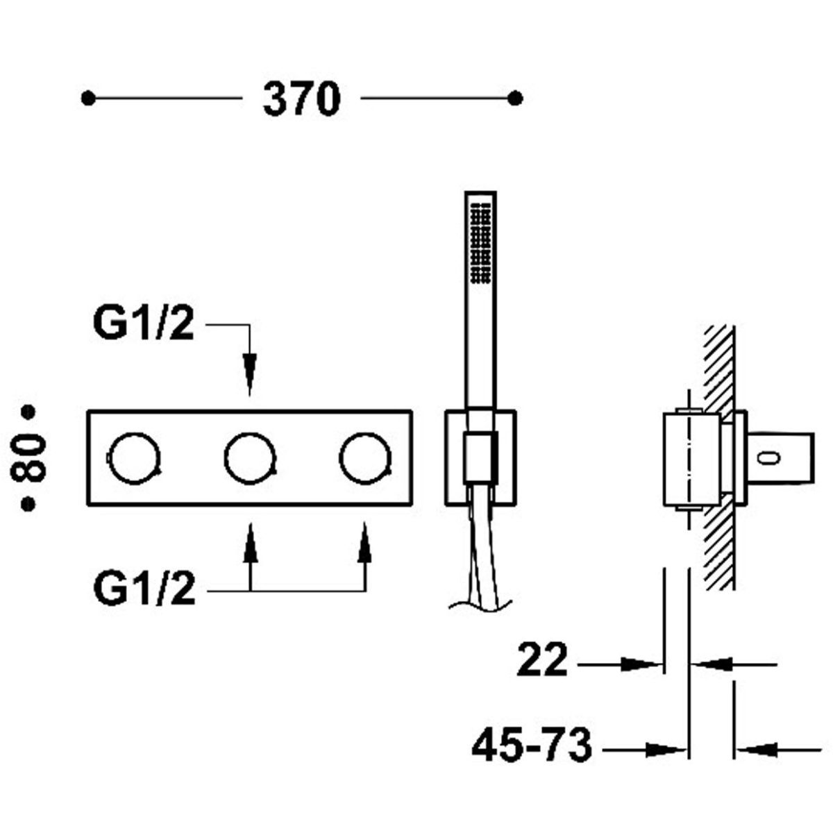 - a csomagban egy vízszintesen felszerelhető, falba süllyesztett termosztátos test