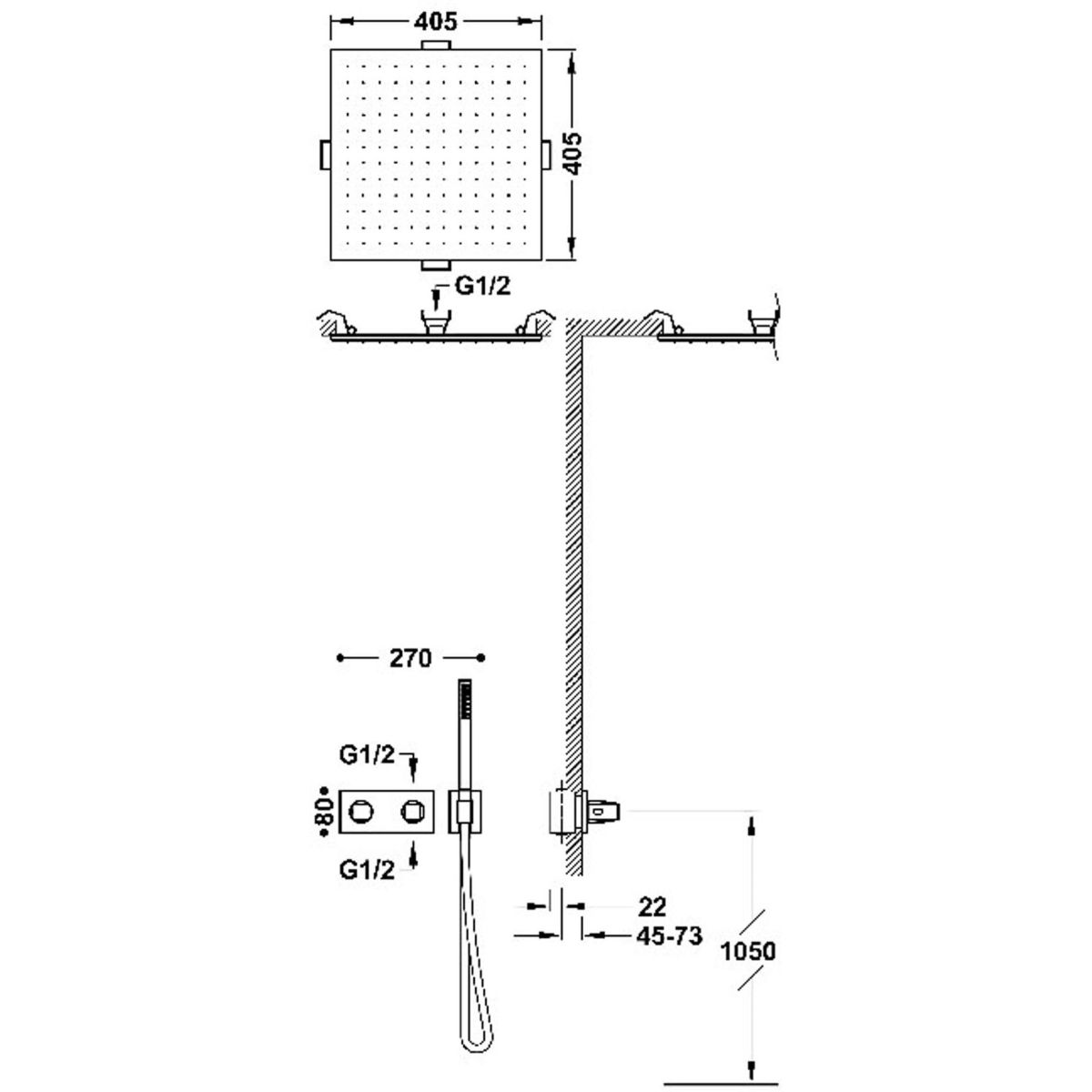 - a fej feletti zuhany méretei: 40,5x40,5 cm
