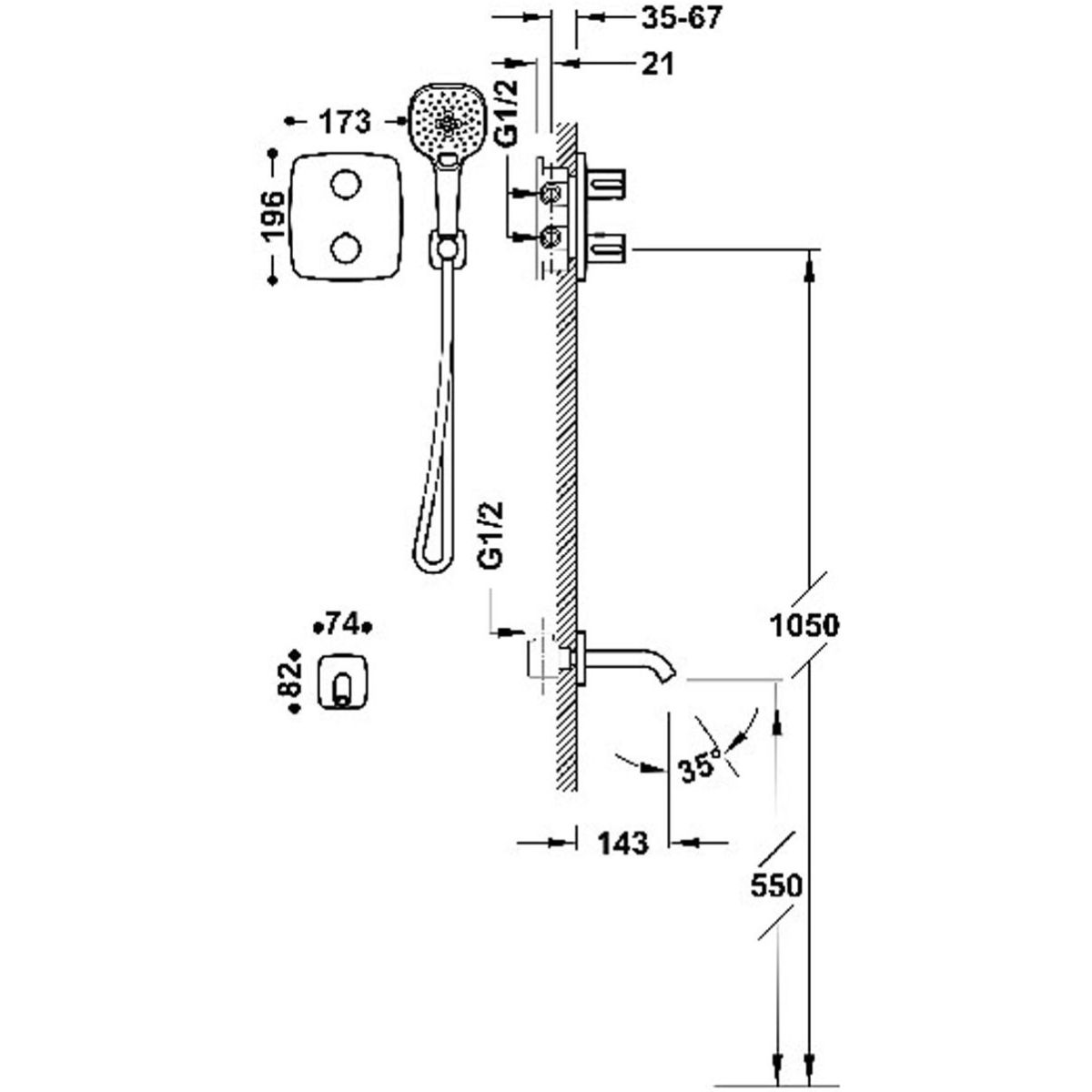 - Készlet tartalma: csaptelep zuhany/kád váltóval, kádtöltő, kézi zuhanyfej, zuhany tömlő, szögcsatlakozás
