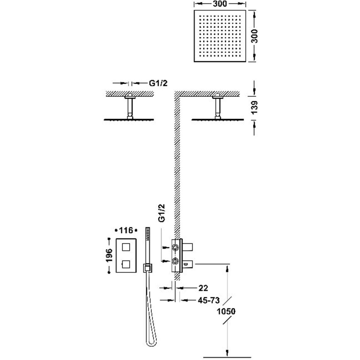 - 30 x 30 cm-es mennyezeti kar rozsdamentes acélból készült, forgatható szórófejjel