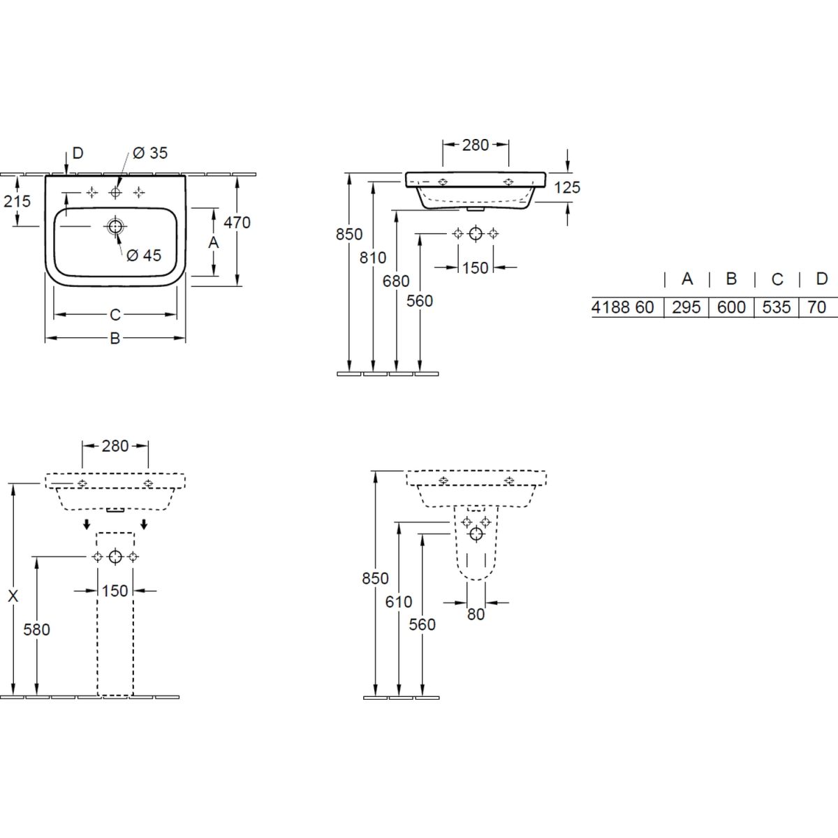 Villeroy & Boch Architectura mosdótál 60x47 cm négyszögletes klasszikus fehér 418860R1