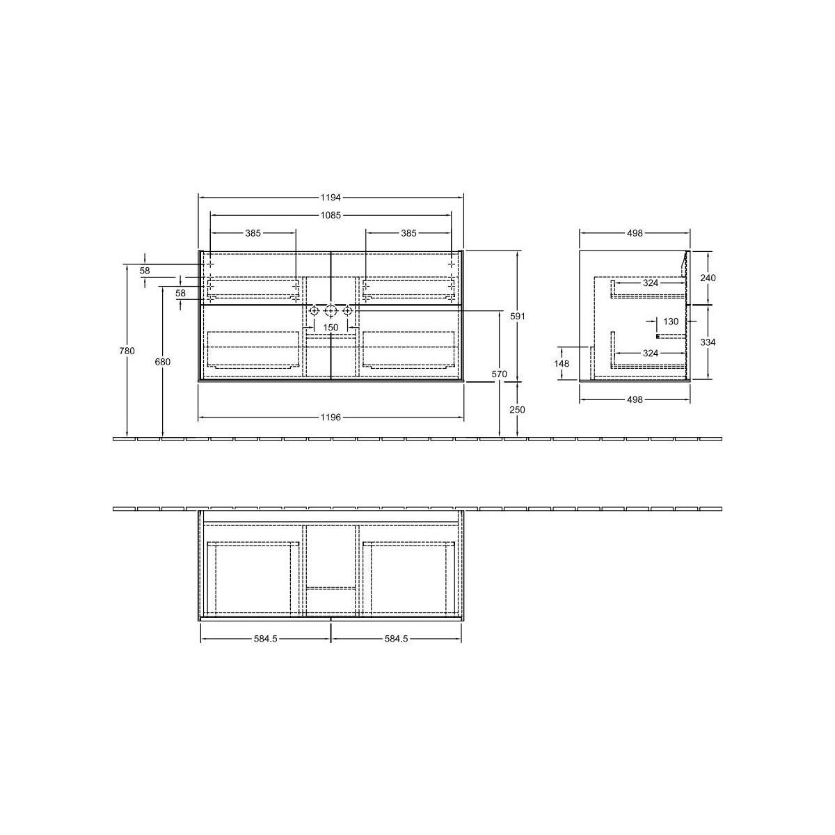 Villeroy & Boch Finion szekrény 119.6x49.8x59.1 cm mosdókagyló alá akasztható antracit F05000GK