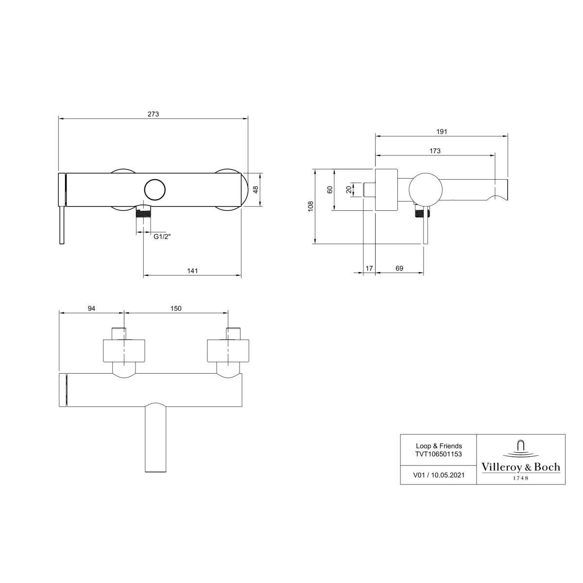 Villeroy & Boch Loop & Friends kád és zuhany csaptelep fali || TVT10650115364