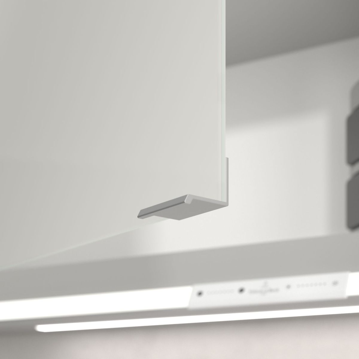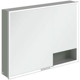 A tükröt körülvevő LED-szalag egyenletes megvilágítást biztosít, míg a beépített mosdóvilágítás és a megvilágított nyitott rekeszek hangulatos légkört teremtenek. A fényerő és a színhőmérséklet kényelmesen beállítható egy érzékelő vagy Smart Home vezérlő segítségével. A finom fogantyúk lehetővé teszik az ajtók kényelmes kinyitását ujjlenyomatok hagyása nélkül, a középen található dupla aljzat pedig további funkcionalitást biztosít.