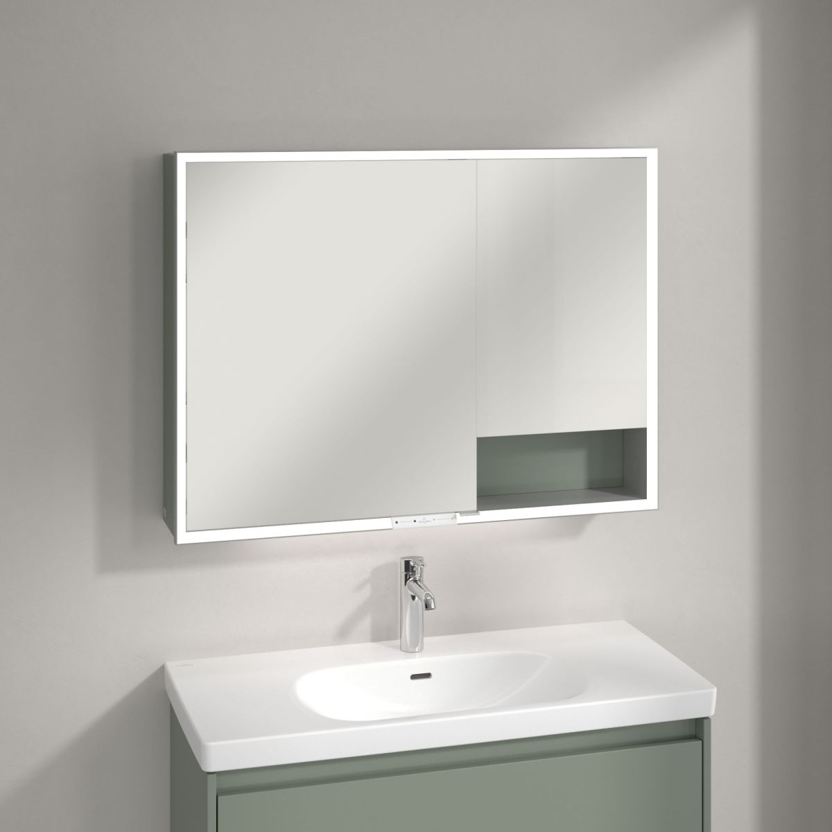 Zseniális és vonzó megoldás minimalista fürdőszobákhoz – a Villeroy & Boch My View+ beépíthető tükörszekrény intelligens funkciókkal és stílusos színakcentussal új szabványokat teremt a fürdőszobában. A zárt tárolórekeszekkel és nyitott rekeszekkel ellátott szekrény tökéletesen illeszkedik a falba, és rendkívül elegáns, minimalista hatást kelt. A színes hátsó panel egyedi színt és dizájnt kölcsönöz a fürdőszobának.