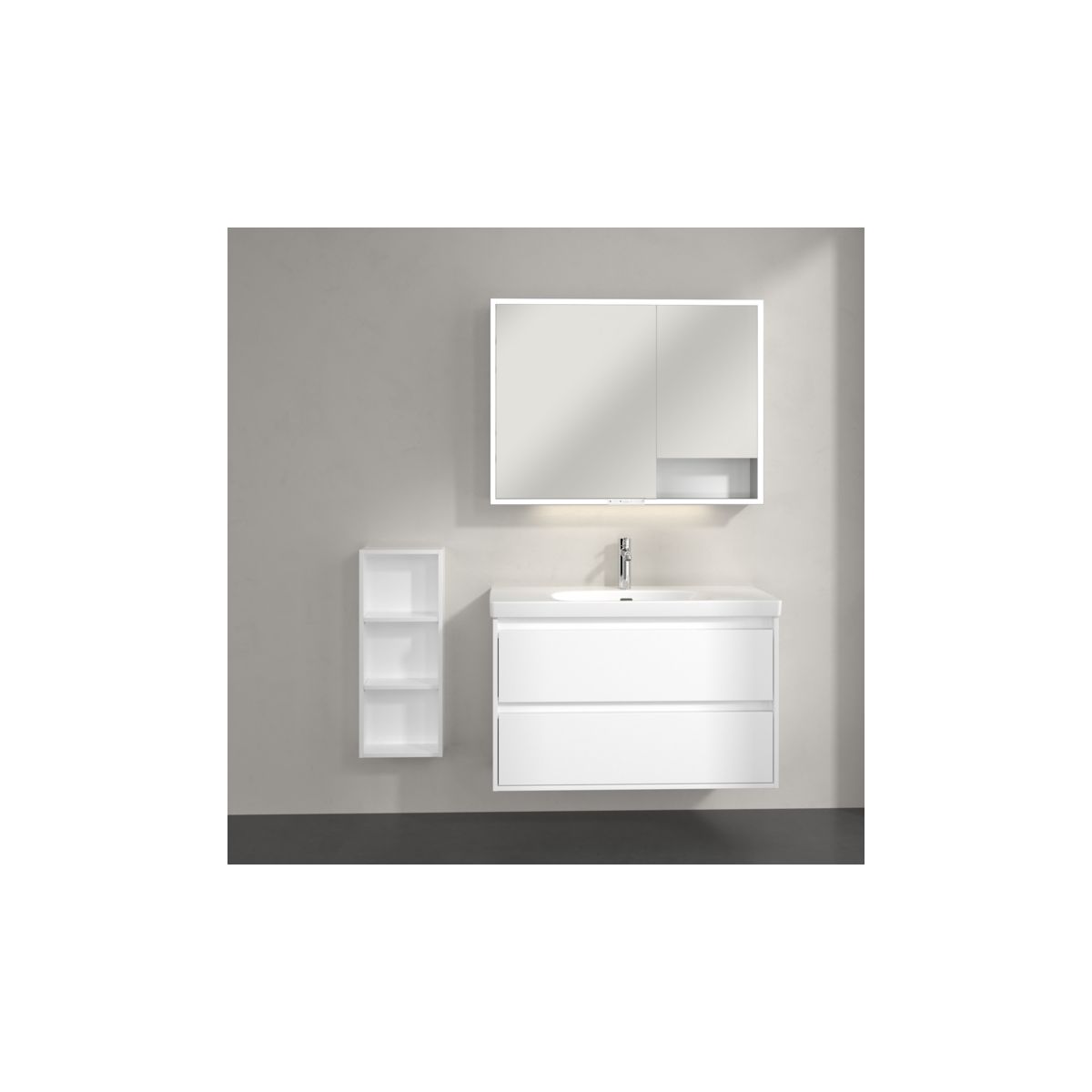 Stílusos kiegészítő a fürdőszobájához: több hely, több rend, több elegancia! A My View+ kiegészítő szekrény tökéletesen kiegészíti az azonos kollekcióból származó, felületre szerelhető tükörszekrényt, és további helyet biztosít a fürdőszobában. Ideális ápolószerek, törölközők vagy kozmetikumok tárolására – minden kéznél van, és stílusosan el van rejtve.