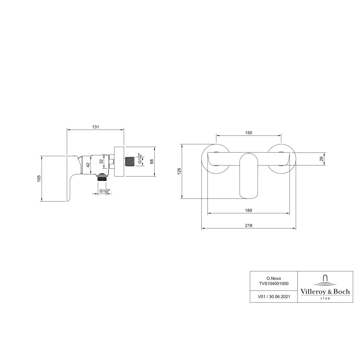 Villeroy & Boch O.Novo zuhanycsaptelep fal króm TVS10400100061