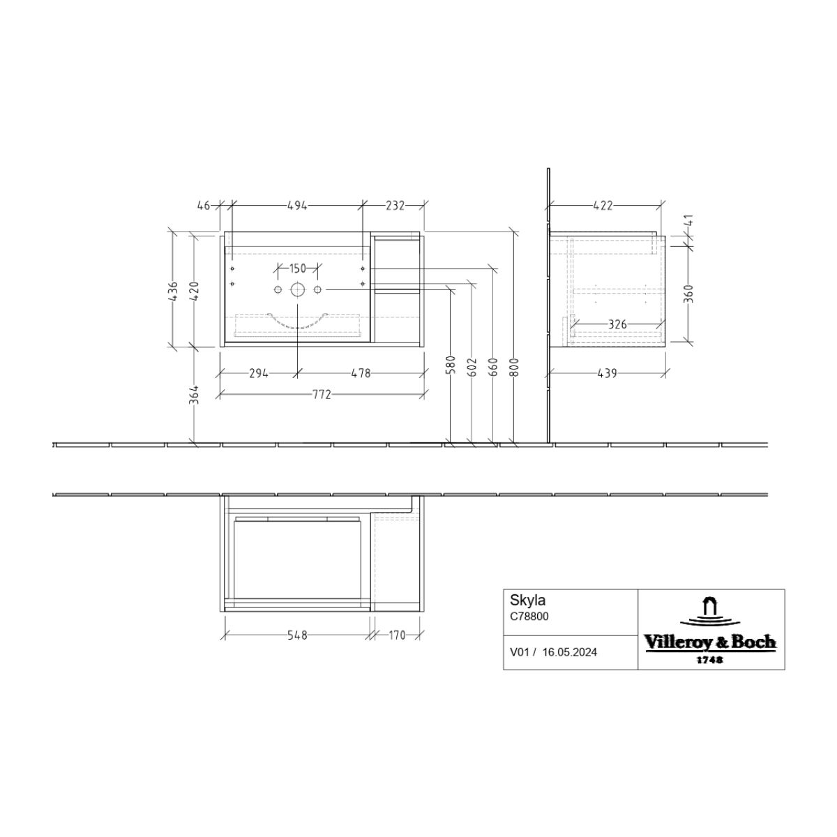 Minimalista kialakítás kreatív tárolóhellyel – tiszta vonalakkal, átgondolt funkcionalitással és kiváló minőségű, népszerű dizájnnal a Villeroy & Boch Skyla kollekciójának mosdószekrénye ötvözi a kortalan esztétikát az okosan megtervezett tárolóhellyel. Az aszimmetrikus kialakítás, amely egy fiókból és nyitott polcokból áll – bal vagy jobb oldalon is elérhető –, rugalmasságot kínál és tökéletesen illeszkedik minden fürdőszoba elrendezéséhez. A belső homlokzatok és a süllyesztett fogantyúval ellátott fiók minimalista hatást keltenek. A teljesen kihúzható fiók rengeteg tárolóhelyet kínál ápolószerek, törölközők és egyéb kiegészítők számára, míg a csúszásgátló talp stabilitást biztosít. A kíméletes önzáró mechanizmus csendes és kényelmes zárást tesz lehetővé. A rugalmas koncepciót további nyitott tárolórekeszek egészítik ki más kiegészítők számára. A harmonikus megjelenés érdekében a mosdószekrény tökéletesen kombinálható a Skyla mosdókkal, csaptelepekkel és a kollekció egyéb bútoraival. A Villeroy & Boch More to See Lite+ tükör kiegészíti a dizájnt és még több funkcionalitást biztosít a fürdőszobában.