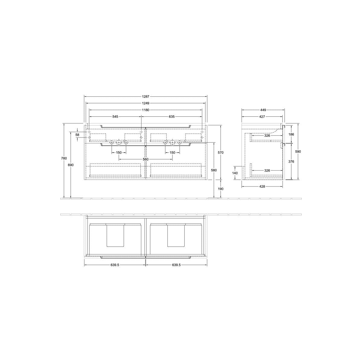 Villeroy & Boch Subway 2.0 szekrény 128.7x44.9x59 cm mosdókagyló alá akasztható fekete A91710VL