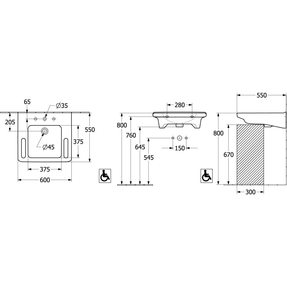 Villeroy & Boch ViCare mosdótál 60x55 cm négyszögletes klasszikus mozgássérülteknek fehér 4A686001