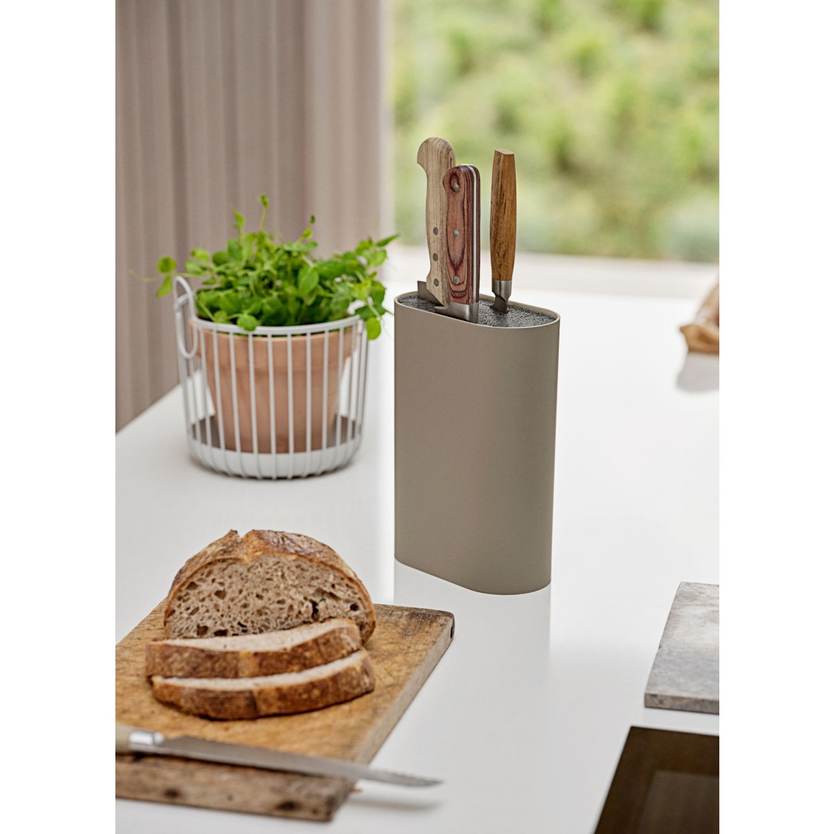 - belsejében kivehető rácsos betét található, amelybe tetszés szerint különböző méretű késeket helyezhetünk el, könnyen kivehető és mosható